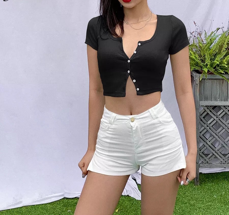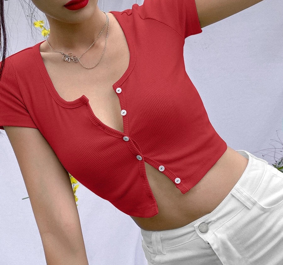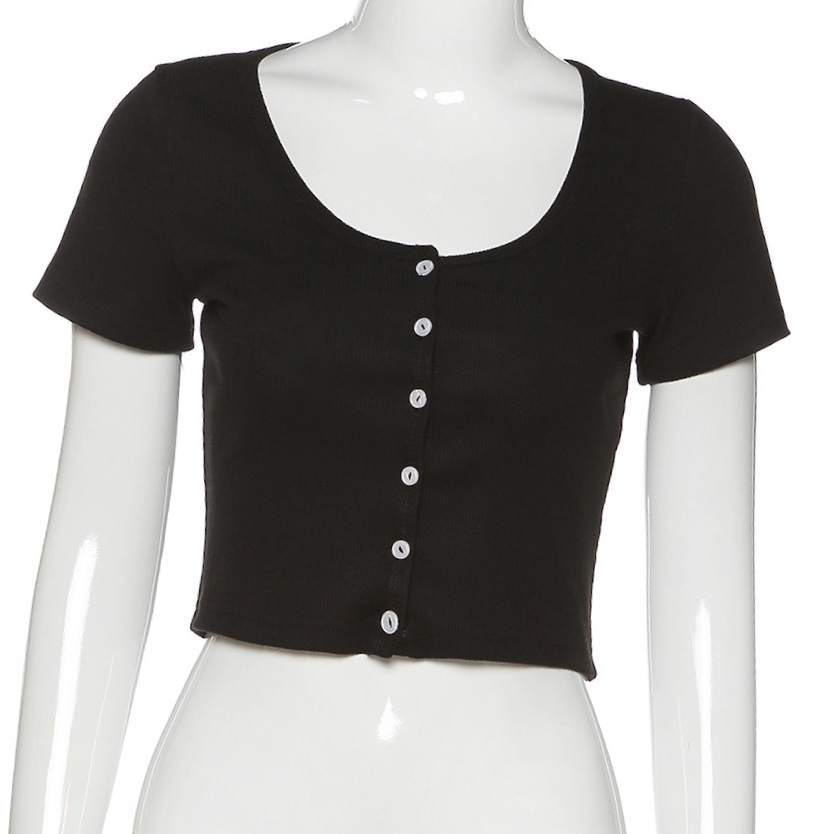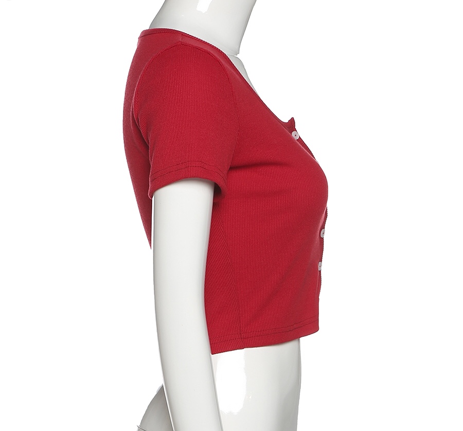 Cute V Neck Short Sleeve Cardigan Button Up Crop Top Tee T-shirt Shirt Kawaii Korean Japanese Harajuku Chinese Retro Streetwear Aesthetic Fashion