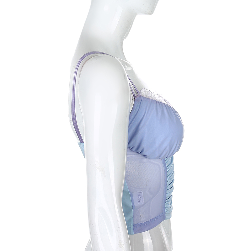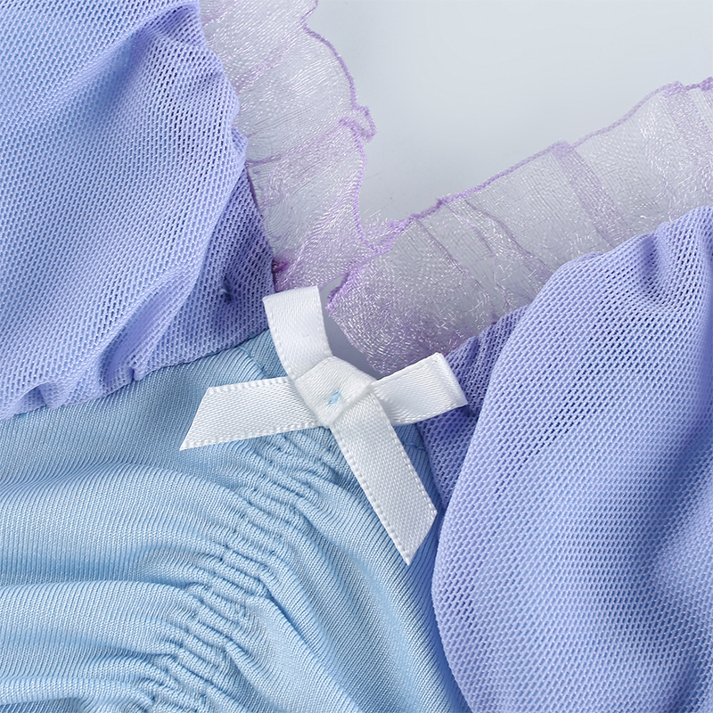 Cute Sexy Mermaid Patchwork Mesh Frill Bow Crop Top Shirt Tee T-shirt E-Girl Kawaii Korean Japanese Harajuku Chinese Retro Streetwear Aesthetic