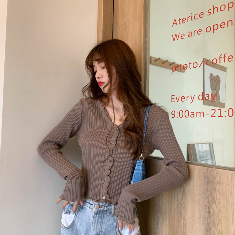 Cute V Neck Knit Casual Thin Sweater Cardigan Shirt Tee T-shirt E-Girl Kawaii Korean Japanese Harajuku Chinese Retro Streetwear