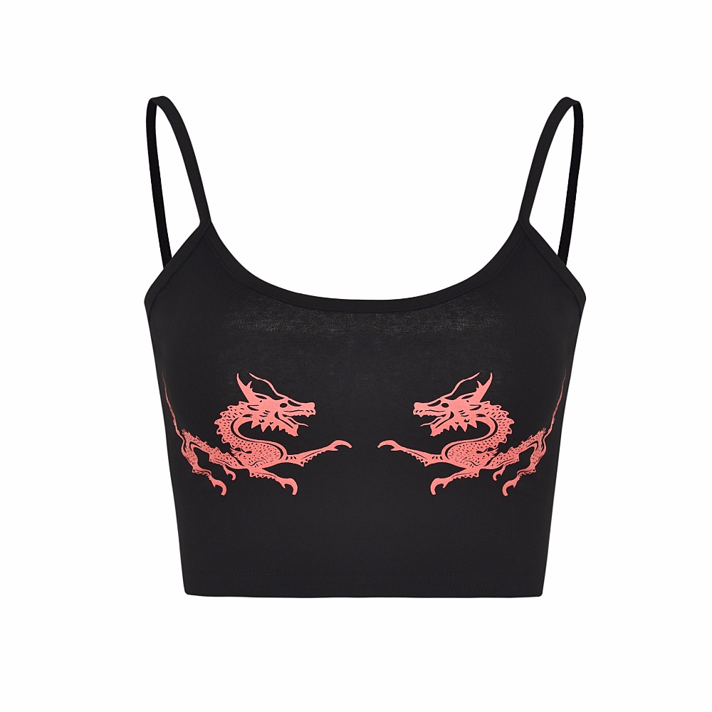 Cute Sexy Casual Dragon Sleeveless Tank Crop Top Shirt Tee T-shirt E-Girl Kawaii Korean Japanese Harajuku Chinese Retro Streetwear Aesthetic