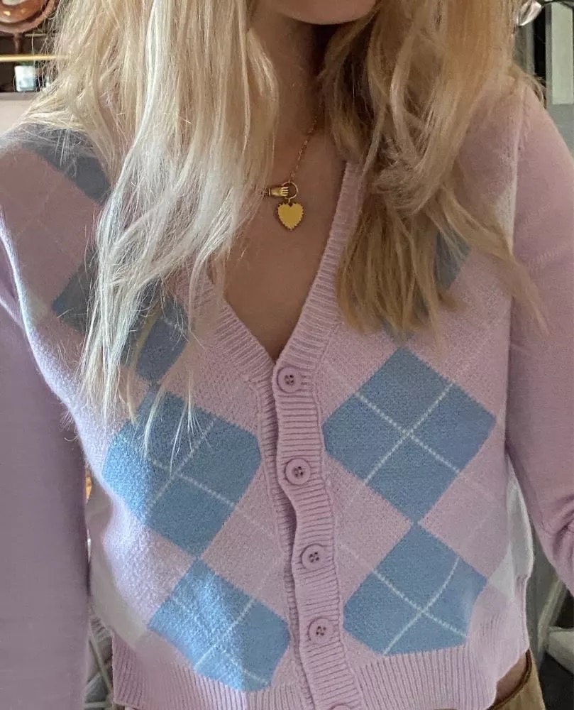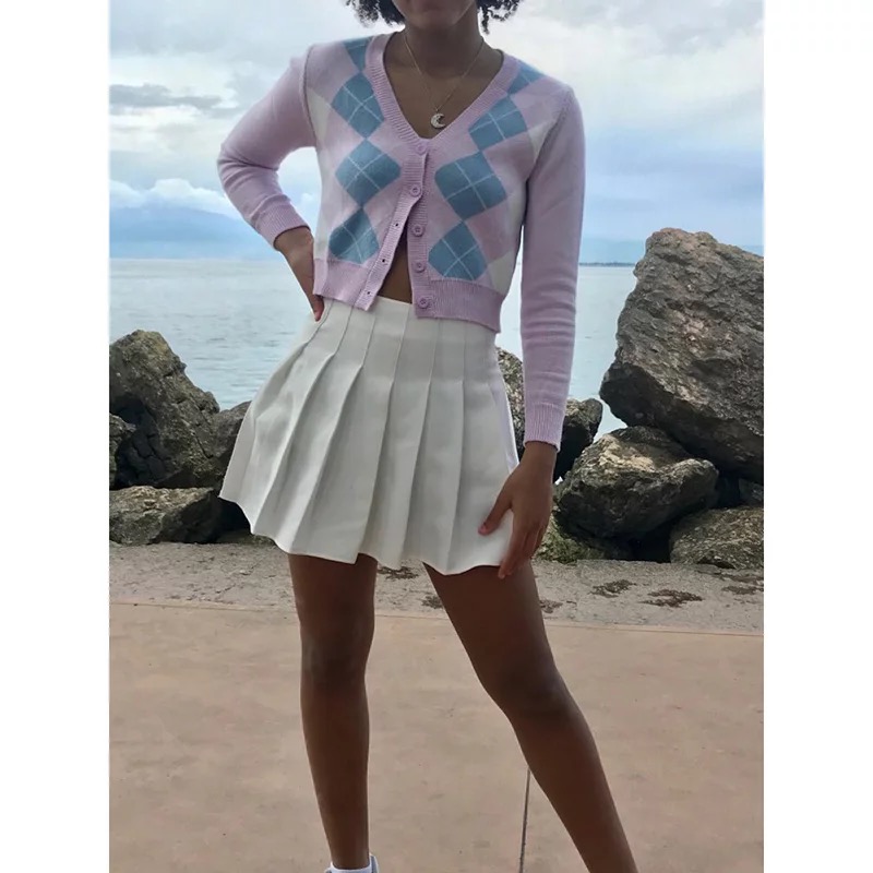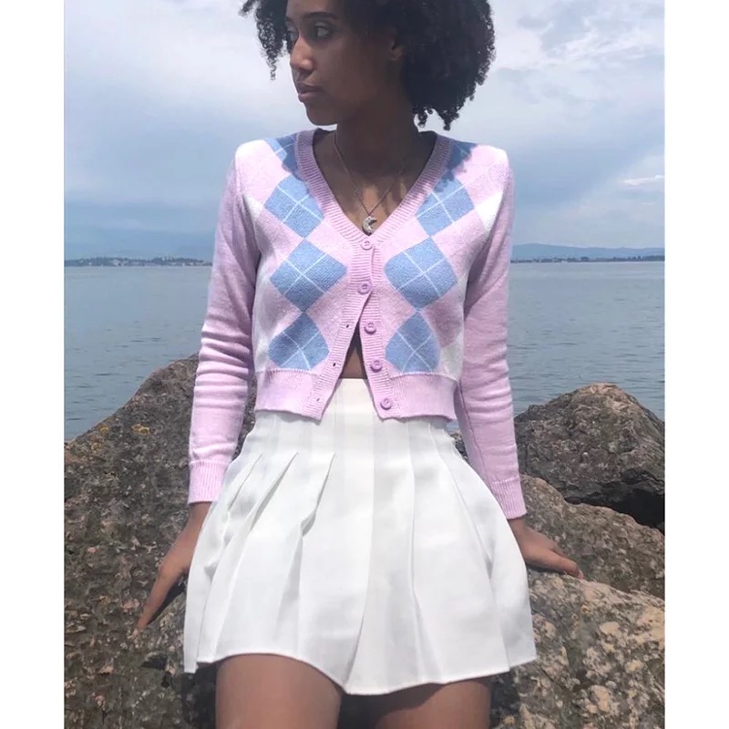 Cute Pink Geometrical Chic Vintage Knit Cardigan Sweater Top Shirt Winter Autumn E-Girl Kawaii Korean Japanese Harajuku Chinese Retro Streetwear