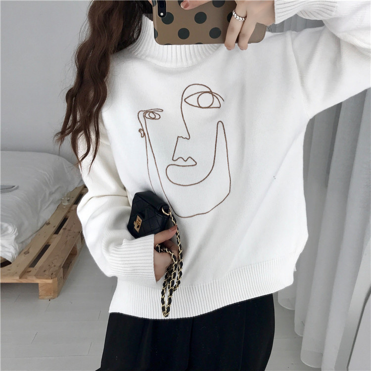 Cute Geometric Face Knit Turtleneck Oversized Sweater Long Sleeve Shirt Pullover Sweatshirt E-Girl Kawaii Korean Japanese Harajuku Retro Streetwear