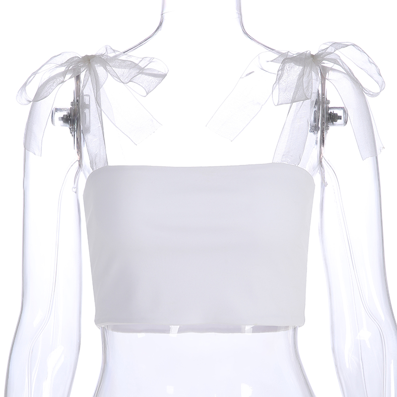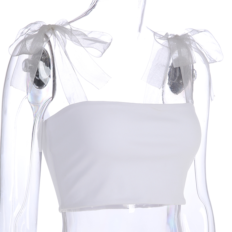 Cute White Patchwork Mesh Transparent Straps Tie Up Tank Top Crop Shirt Tee T-shirt E-Girl Kawaii Korean Japanese Harajuku Retro Streetwear Aesthetic