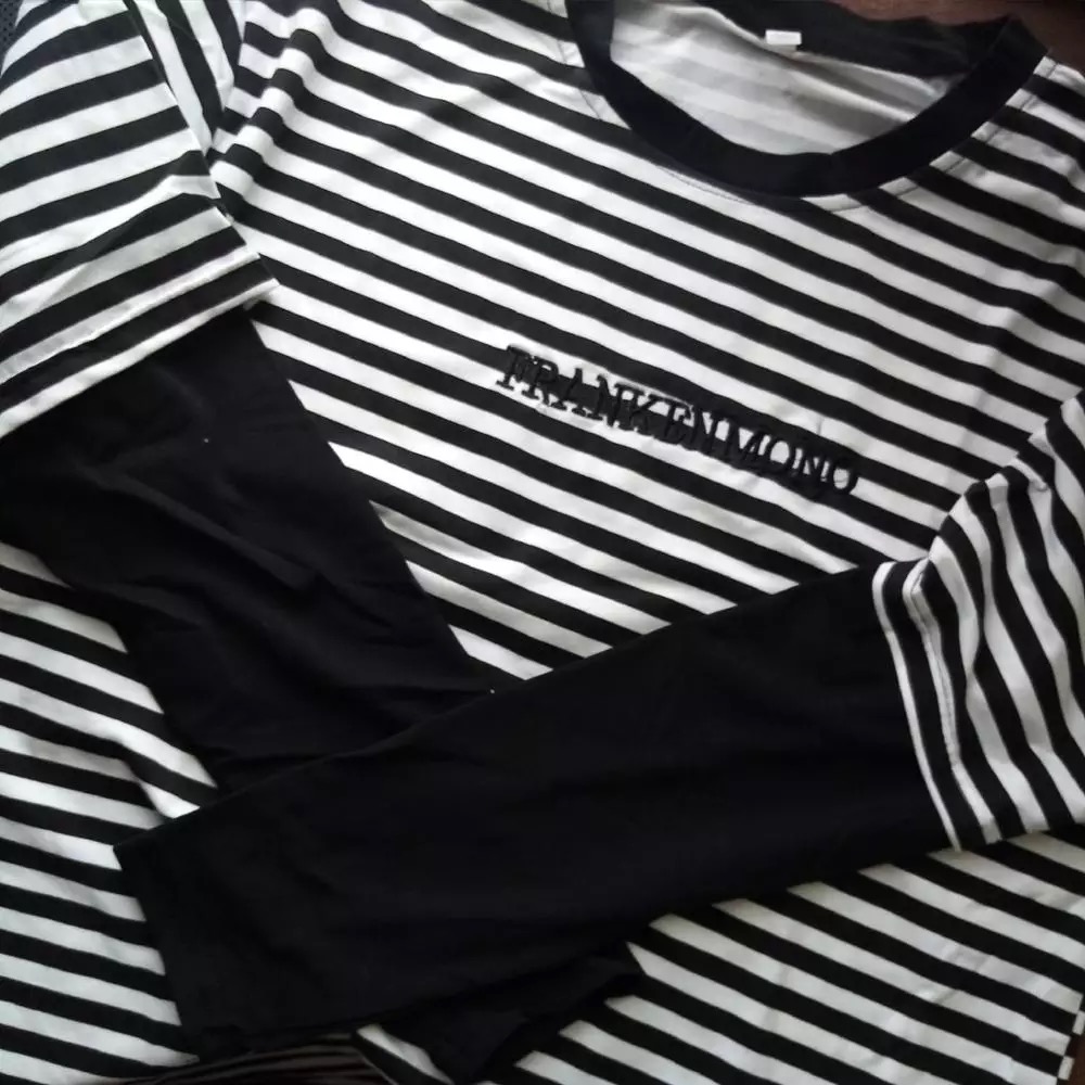 Cute Casual Letter Stripe Patchwork Long Sleeve Tee Shirt T-shirt Top Spring Summer O-neck E-Girl Kawaii Korean Japanese Harajuku Retro Streetwear