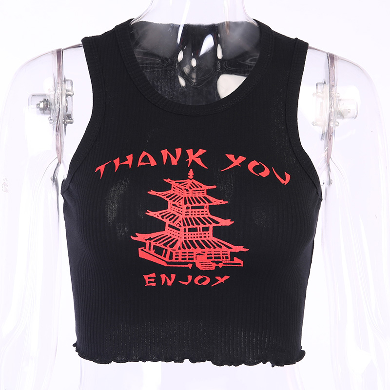 Cute Chinese Takeout Letter Embroidery White Tank Top Cropped Camisole Tee Shirt T-shirt E-Girl Kawaii Korean Japanese Harajuku Retro Streetwear