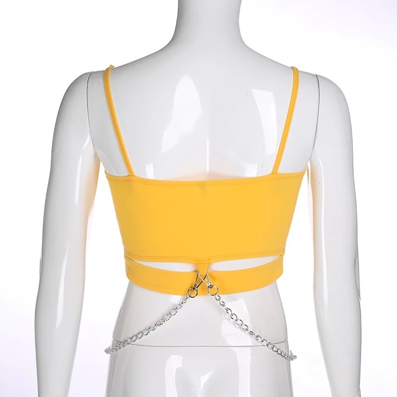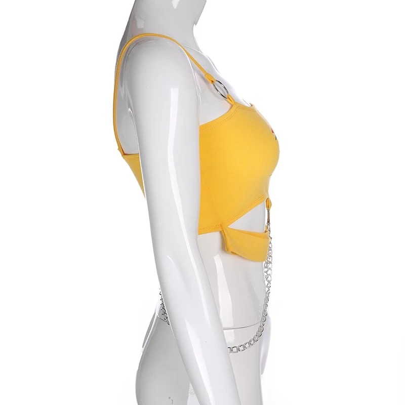 Sexy Yellow Rebel Letter Print Biker Punk Goth Hallow Out Metal Chain Crop Top Tank E-Girl Kawaii Korean Japanese Harajuku Retro Streetwear