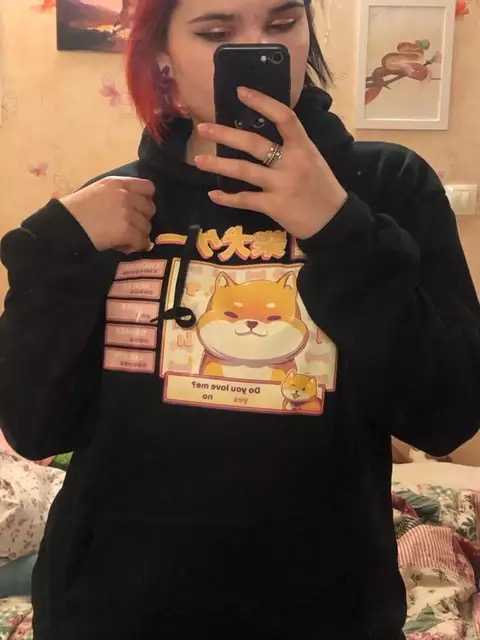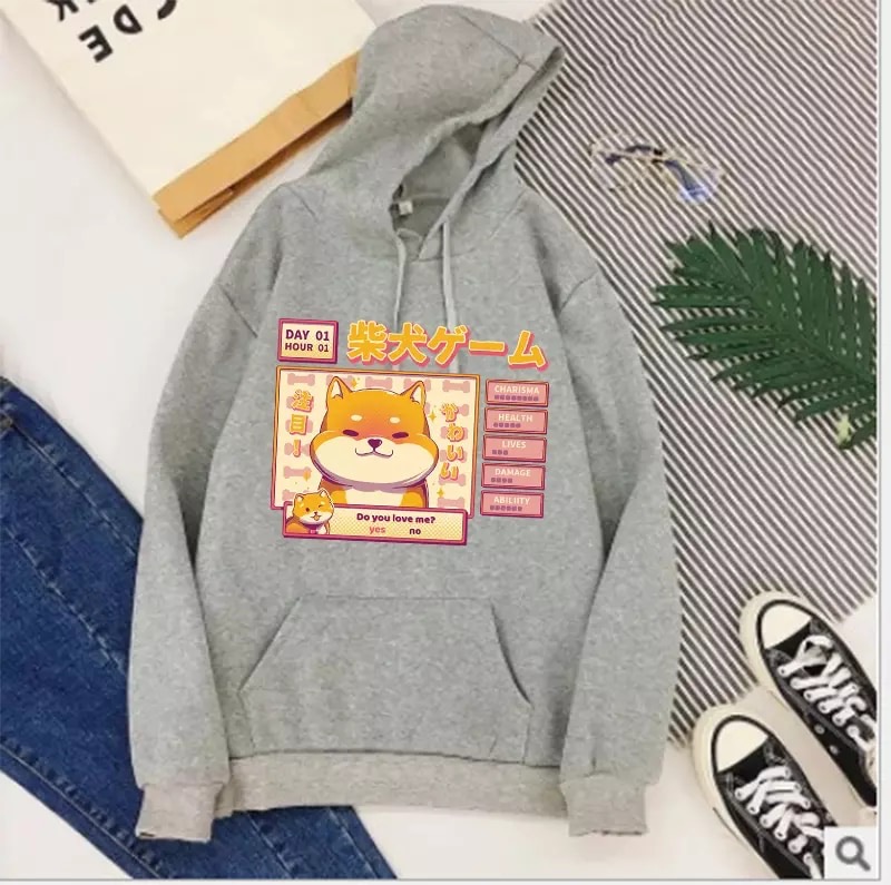 Cute Pastel Shiba Inu Dog Cartoon Print 90s Oversized Hoodie Sweater Sweatshirt Pullover Winter E-Girl Kawaii Korean Japanese Harajuku Streetwear