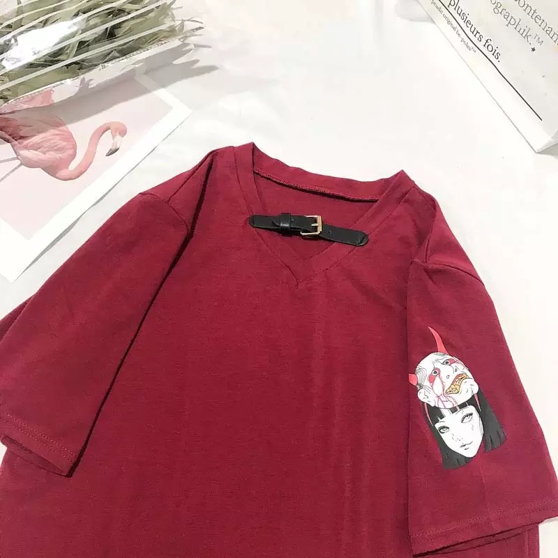 Cute Anime Demon Girl Cartoon Print Graphic Punk Goth Oversized Short Sleeve Tee Shirt T-shirt Top E-Girl Kawaii Korean Japanese Harajuku Streetwear