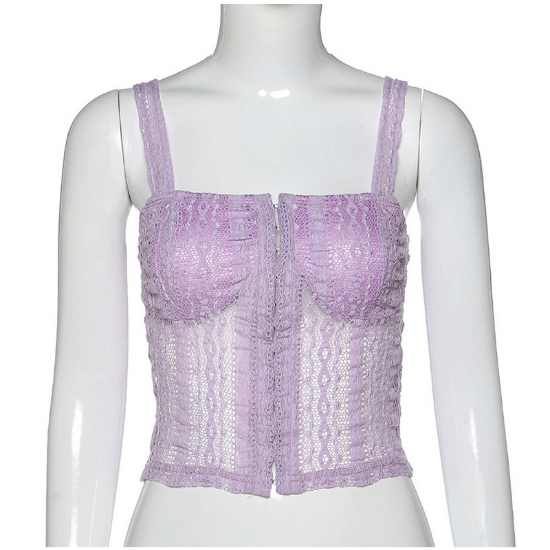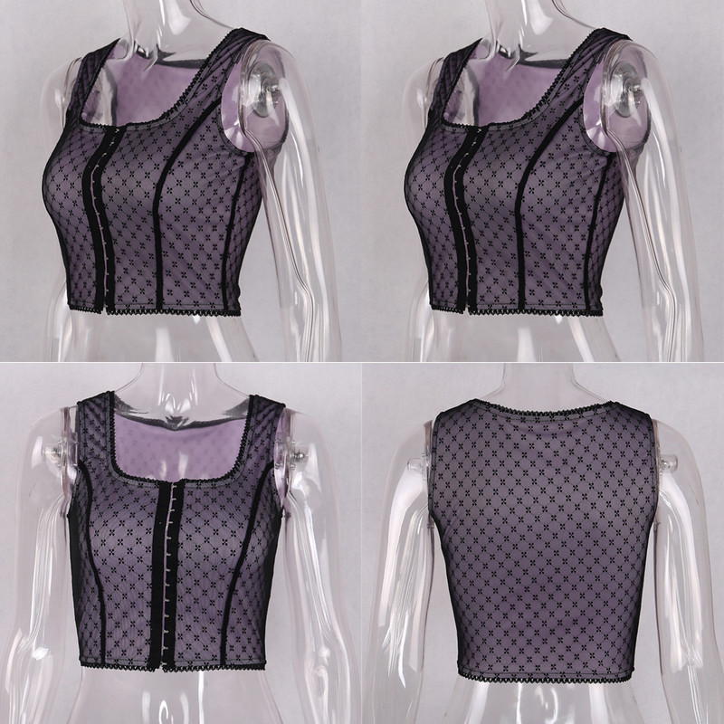 Sexy Lace Net Crop Top Tank Camisole Sleeveless Shirt Summer Causal E-Girl Kawaii Korean Japanese Harajuku Streetwear