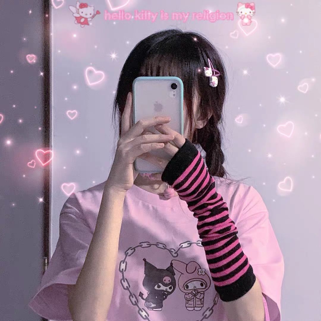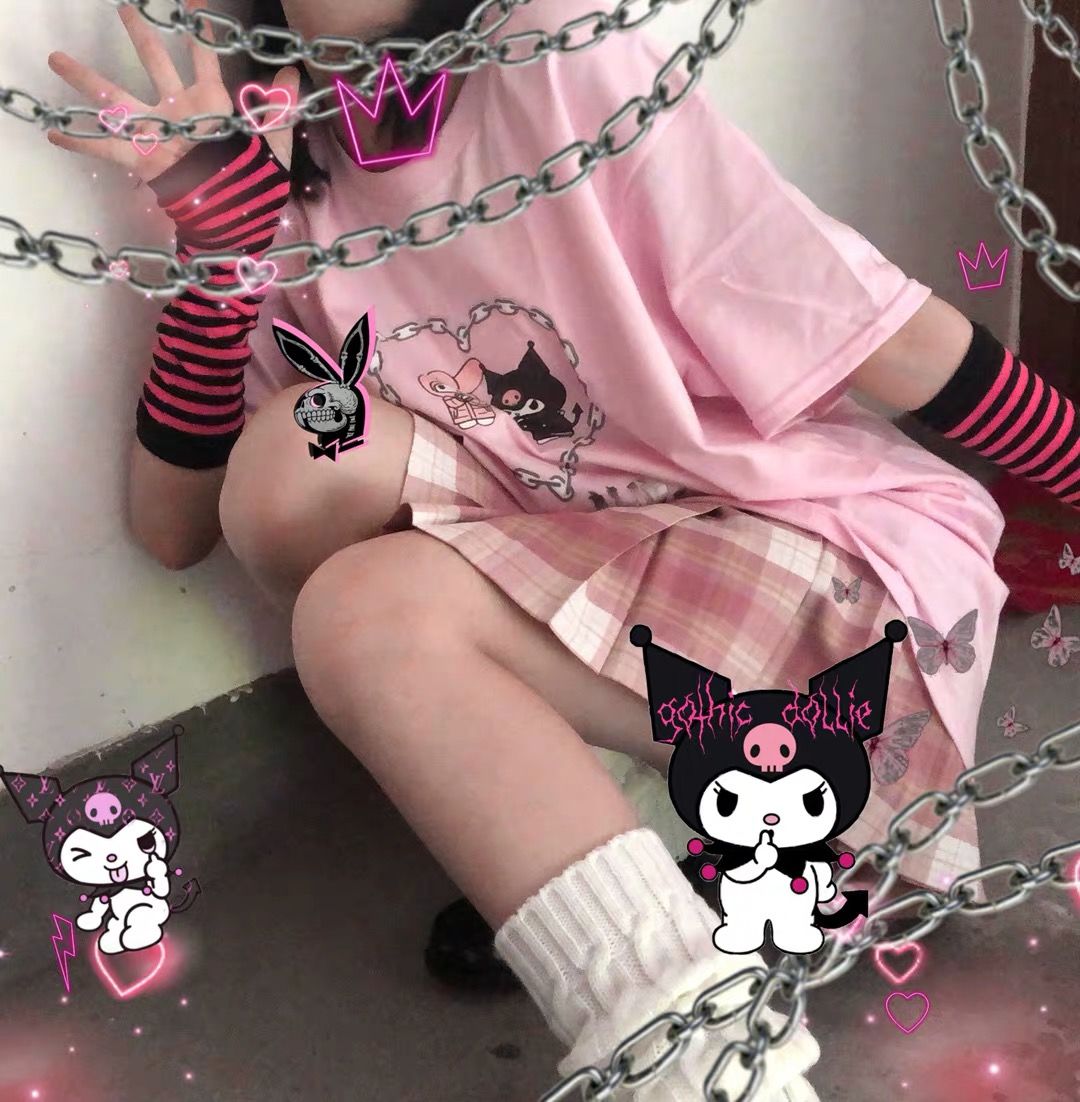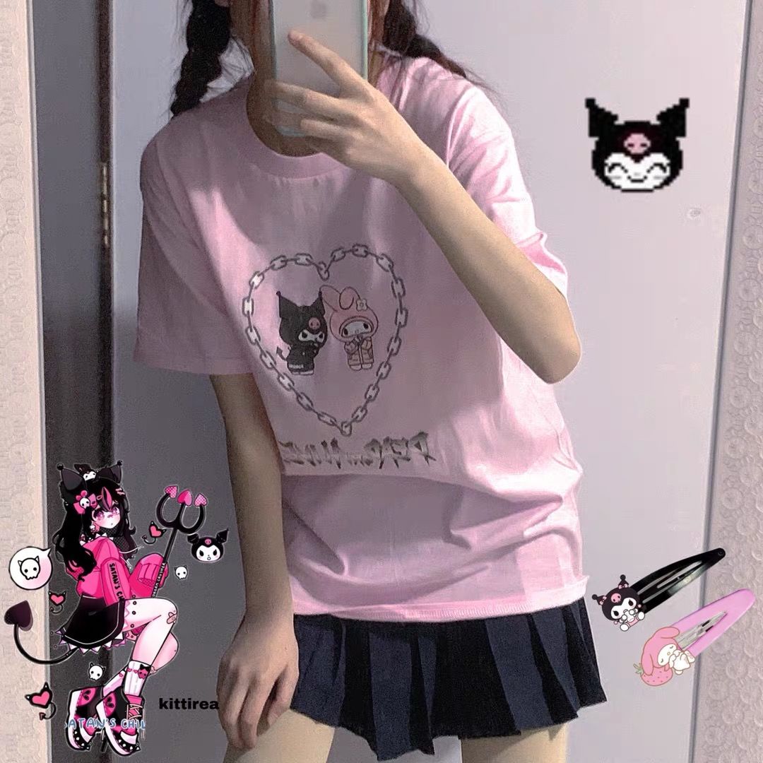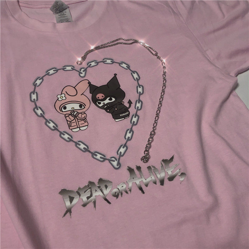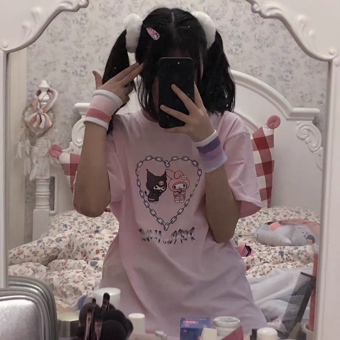 Cute Pastel Pink Anime Cartoon Print Rabbit Letter Short Sleeve Shirt T-shirt Top E-Girl Kawaii Korean Japanese Harajuku Streetwear