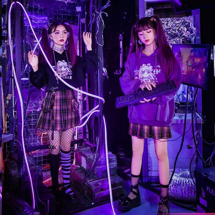Anime Girl Cartoon Print Graphic Hoodie Long Sleeve Sweatshirt Sweater Pullover Causal Punk Goth E-Girl Kawaii Korean Japanese Harajuku Streetwear