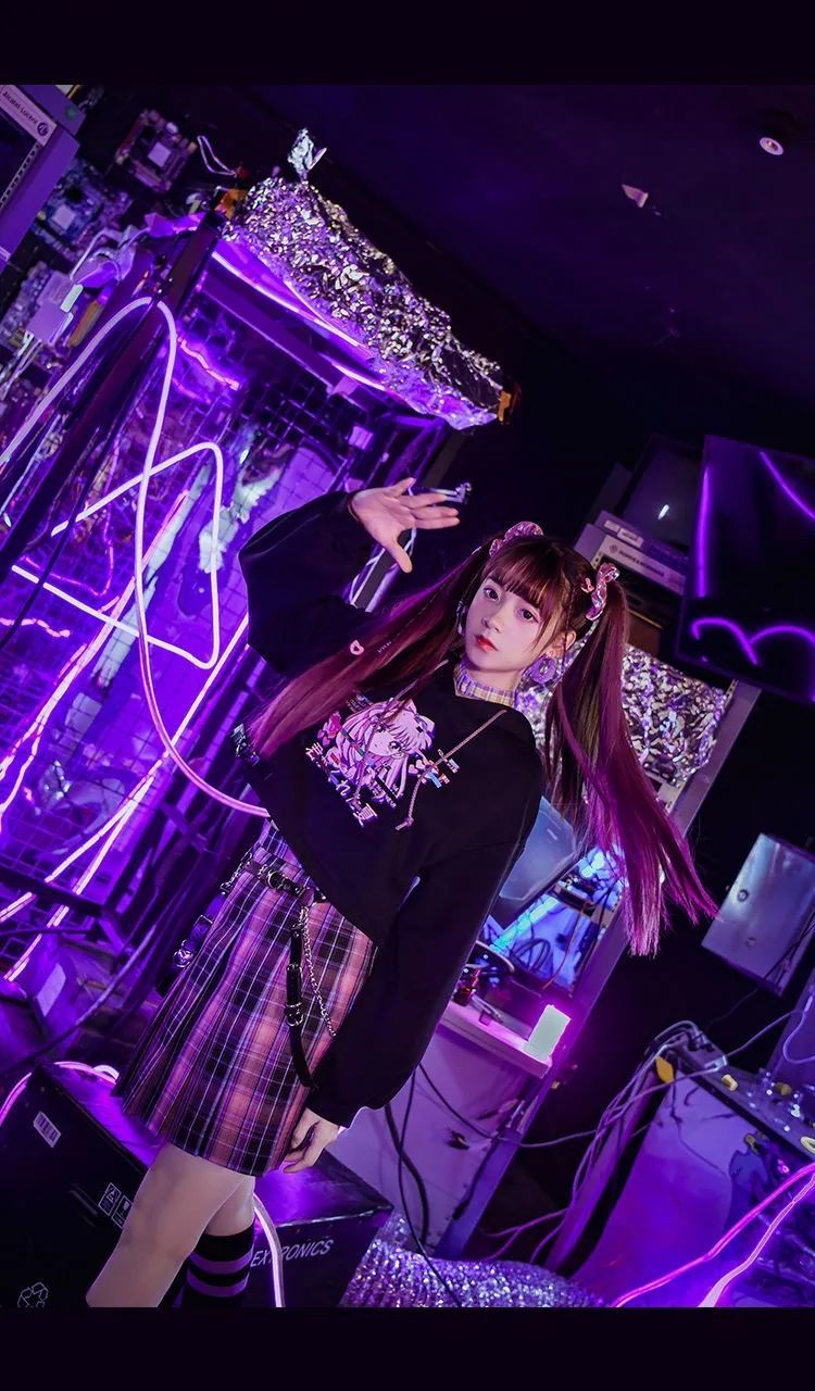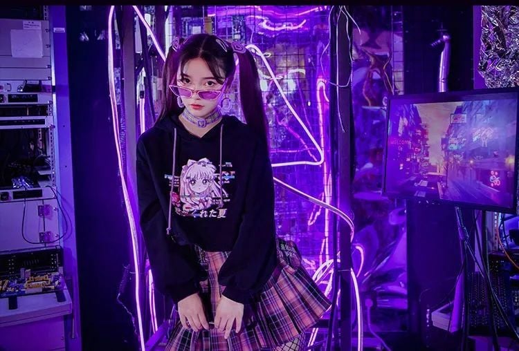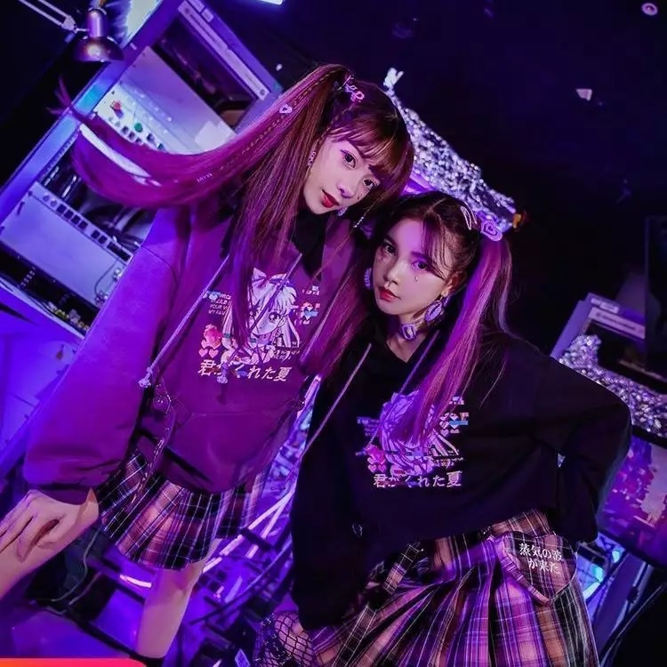 Anime Girl Cartoon Print Graphic White long Sleeve Hoodie Sweater Sweatshirt Pullover Top E-Girl Kawaii Korean Japanese Harajuku Streetwear