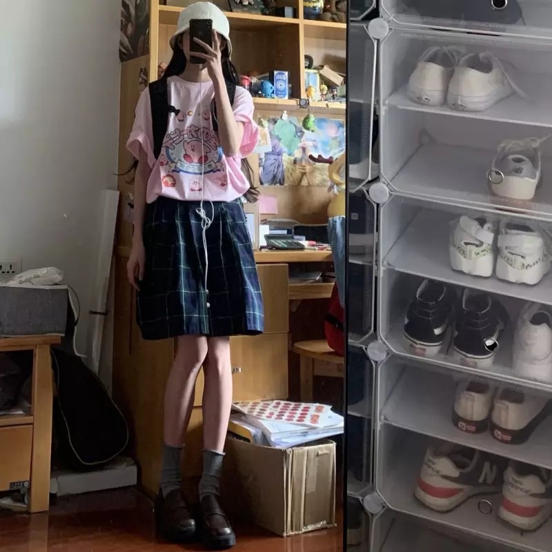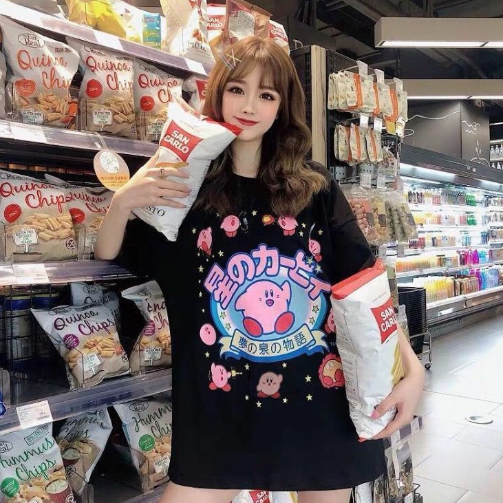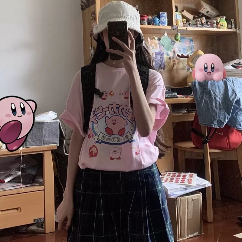 Pastel Pink Japanese Anime Graphic Cartoon Print Loose Short Sleeve T-shirt