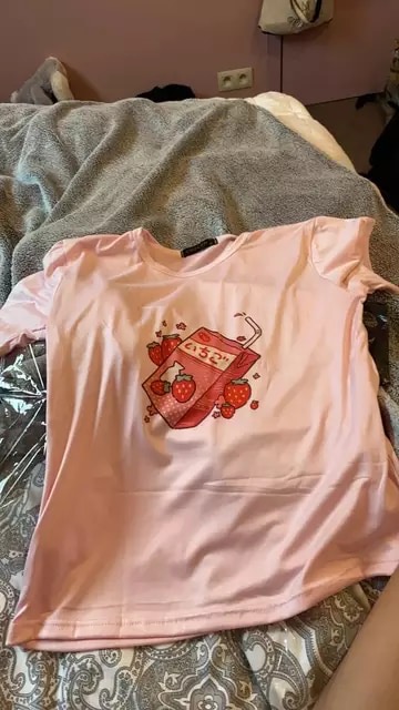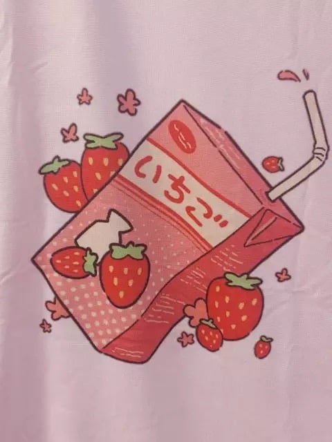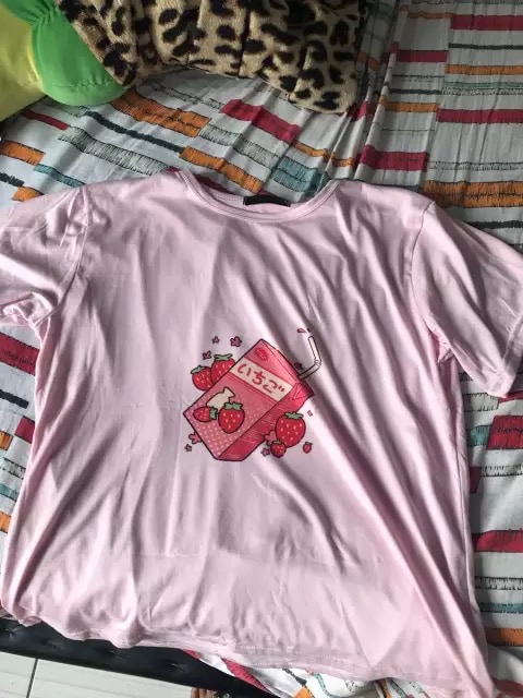 Cute Pink Strawberry Juice Box Graphic Cartoon Print Loose Short Sleeve Short T-shirt Top Casual E-Girl Kawaii Korean Japanese Harajuku Streetwear
