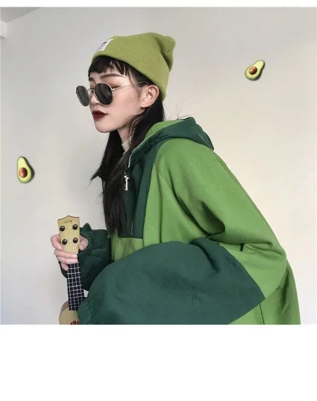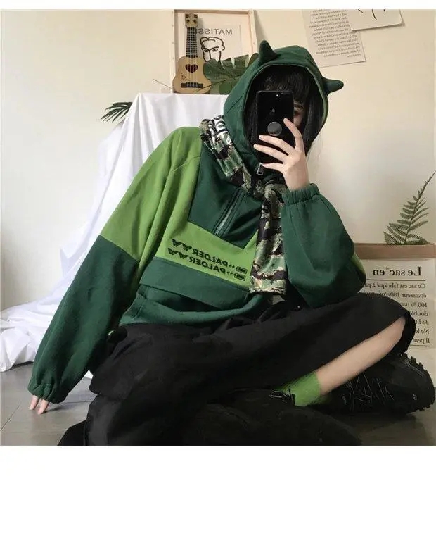 Cute Green Frog Animal Cartoon Aesthetic Long Sleeve Hoodie Sweater Sweatshirt Pullover Jumper E-Girl Kawaii Korean Japanese Harajuku Streetwear