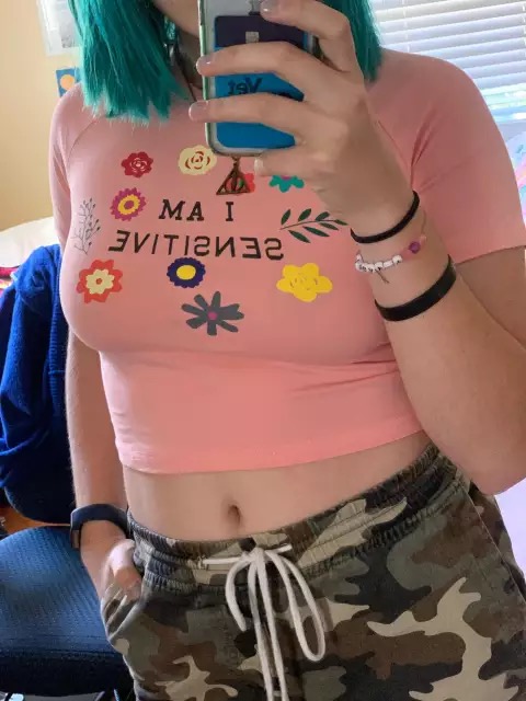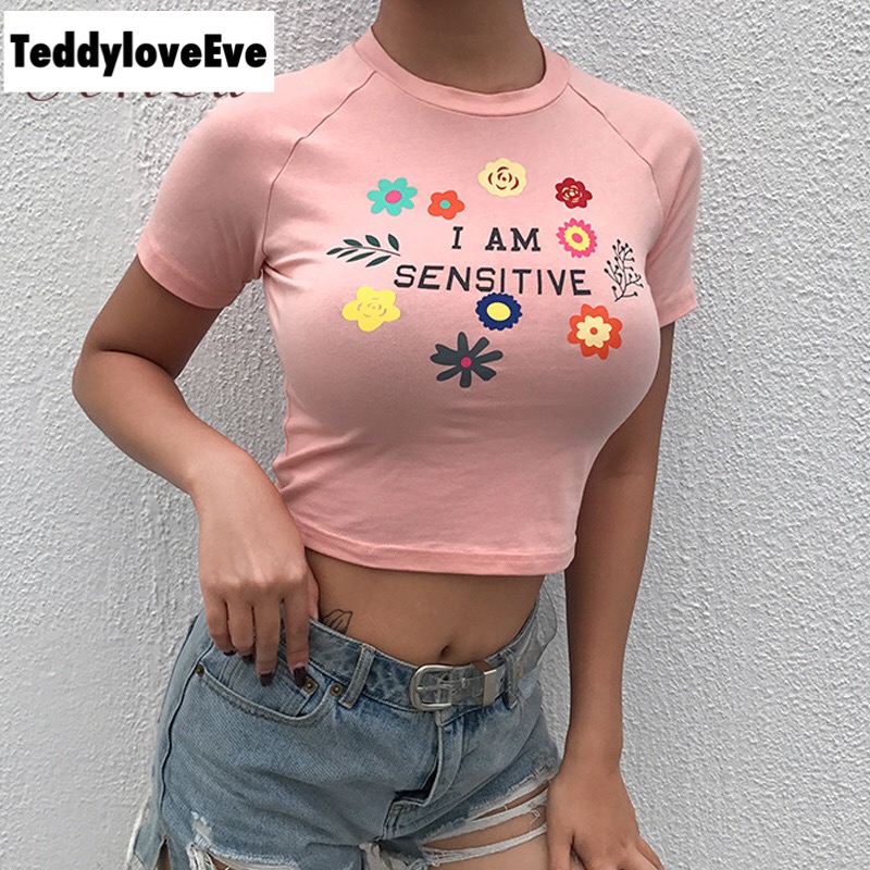 Cute Sensitive Pink Flower Embroidery Sexy Crop Top Short Sleeve Shirt Tee T-shirt Summer Casual E-Girl Kawaii Korean Japanese Harajuku Streetwear