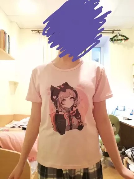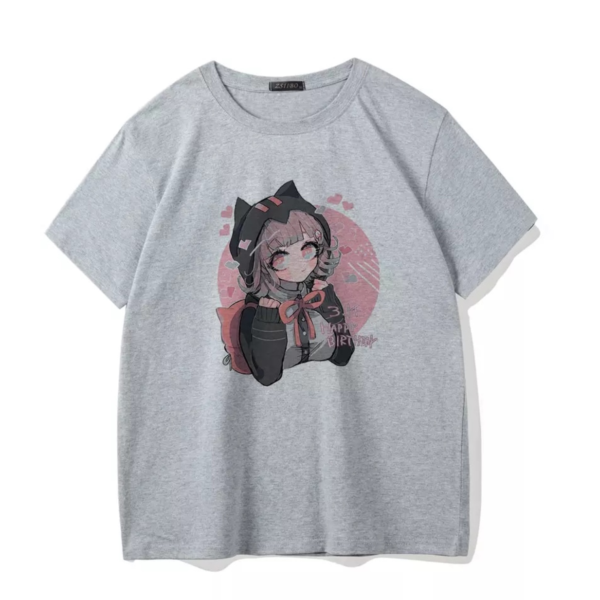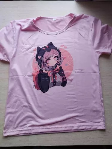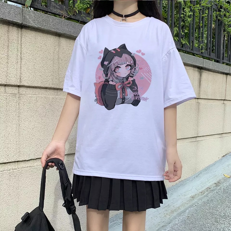 Cute Cat Anime Girl Cartoon Print Oversized Loose Short Sleeve Shirt Tee T-shirt Summer Casual E-Girl Kawaii Korean Japanese Harajuku Streetwear