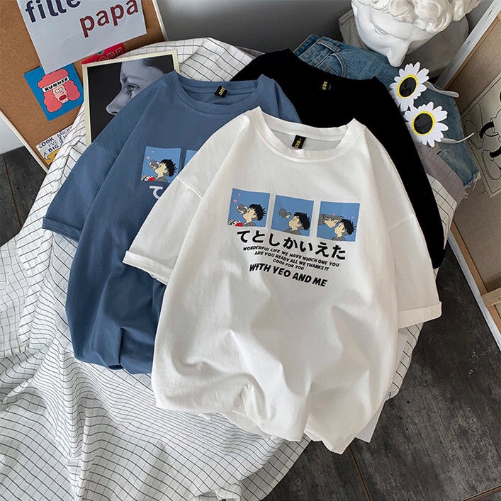 Cute Anime Boy Print Cartoon Oversized Loose Short Sleeve Shirt T-shirt Top Tee Summer Casual E-Girl Kawaii Korean Japanese Harajuku Streetwear