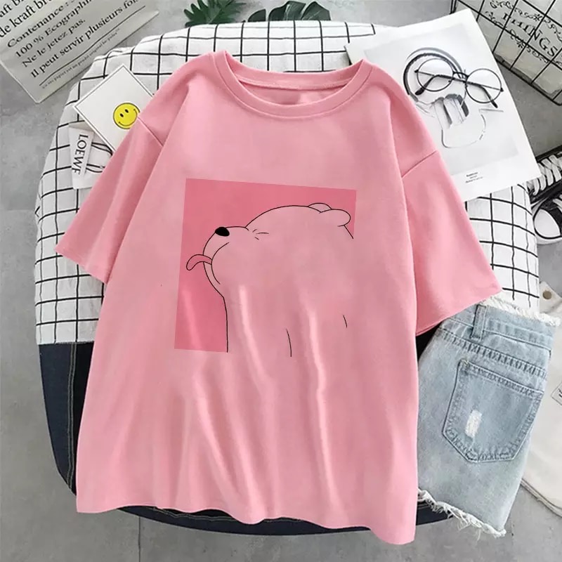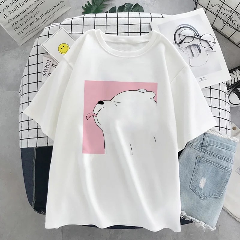 Cute Polar Bear Animal Print Cartoon Loose Oversize Short Sleeve Short T-shirt Tee Top Summer Casual E-Girl Kawaii Korean Japanese Harajuku Streetwear