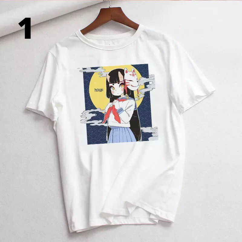 Anime Girl Goth Punk Horror Cartoon Print Loose Short Sleeve Short T-shirt Tee Top Summer Casual E-Girl Kawaii Korean Japanese Harajuku Streetwear