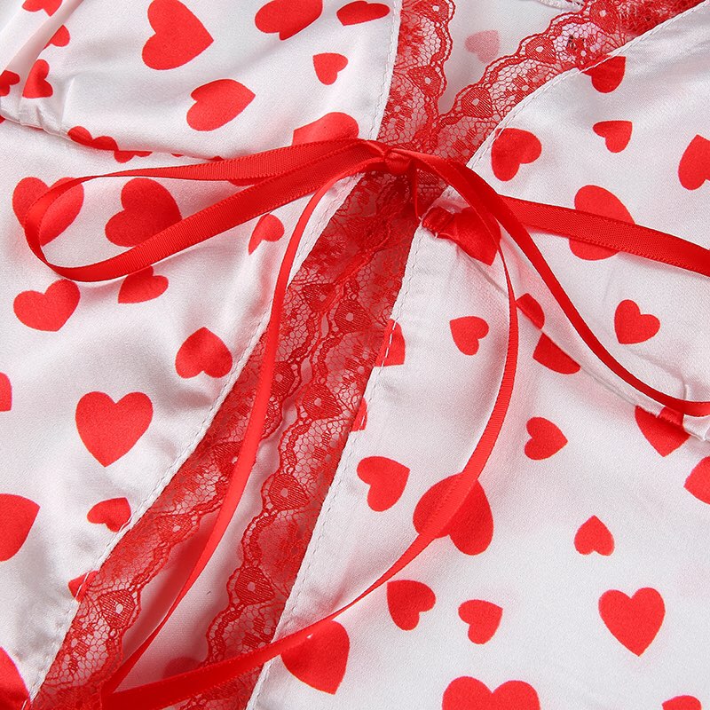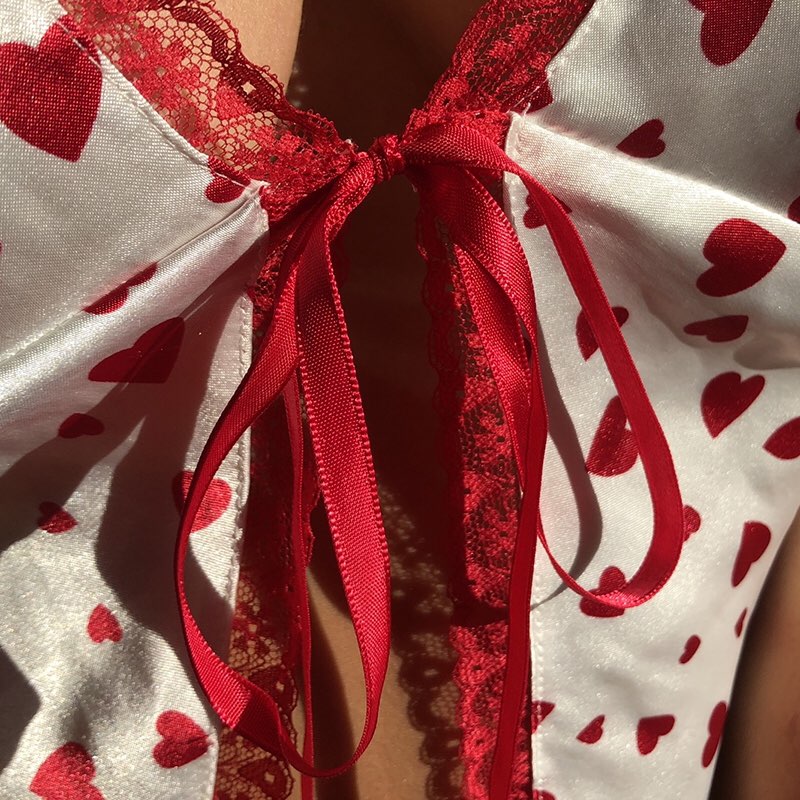Cute Sexy Heart Print V Neck Lace Edge Crop Top Camisole Shirt Club Party Summer Casual E-Girl Kawaii Korean Japanese Harajuku Streetwear
