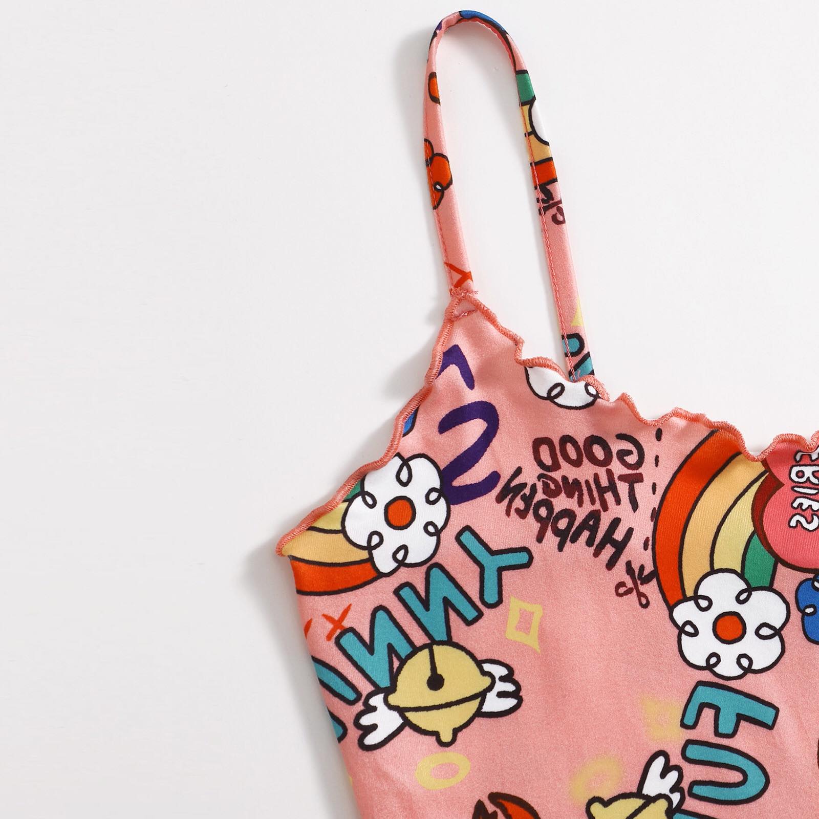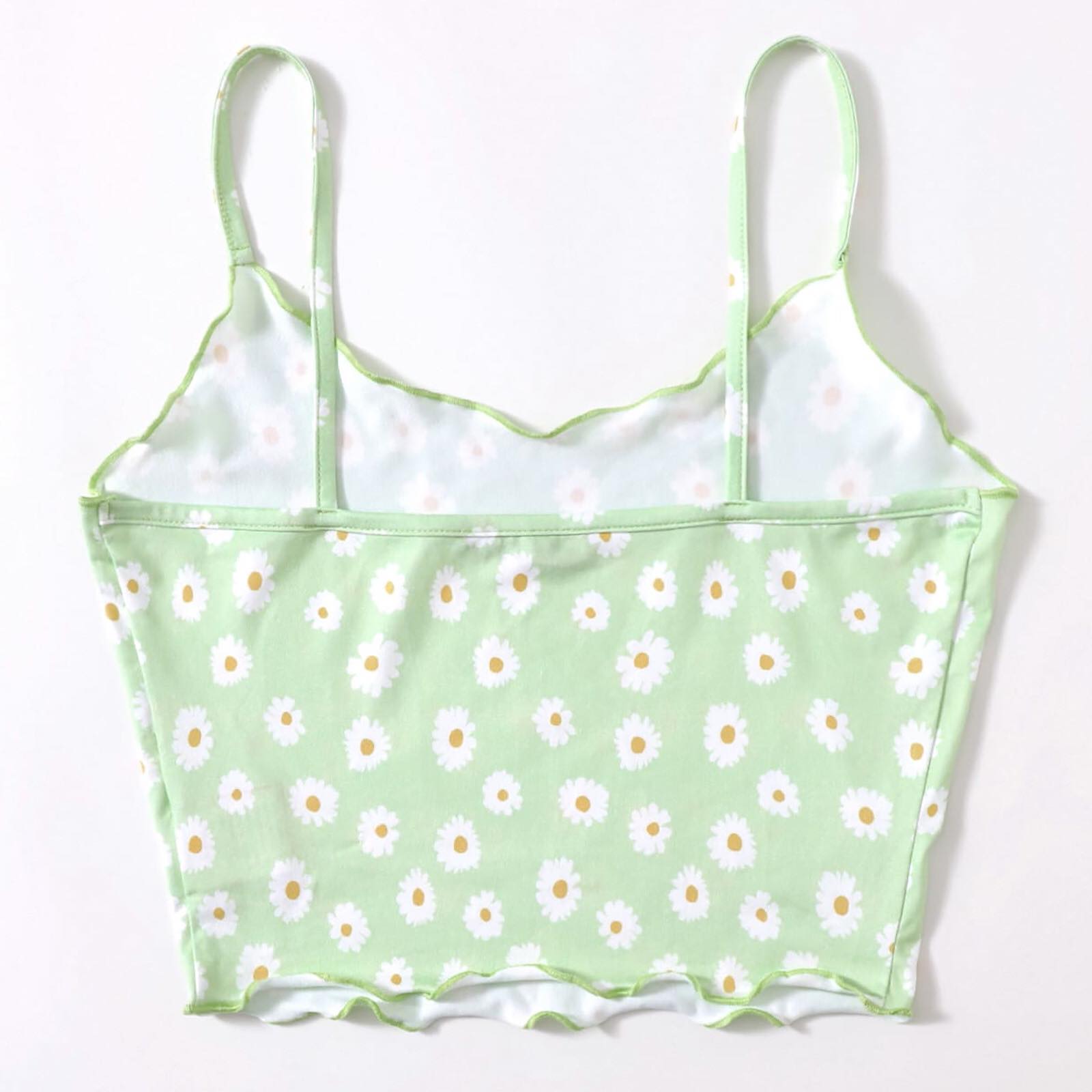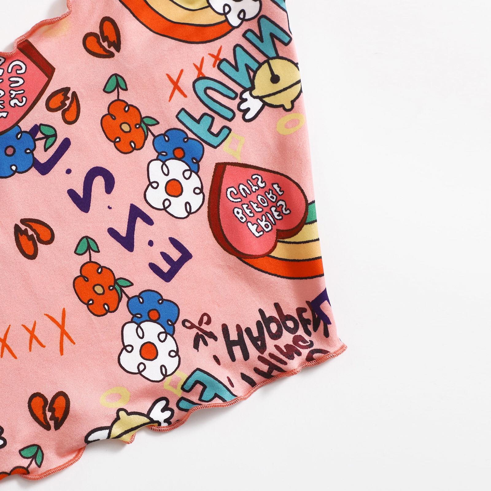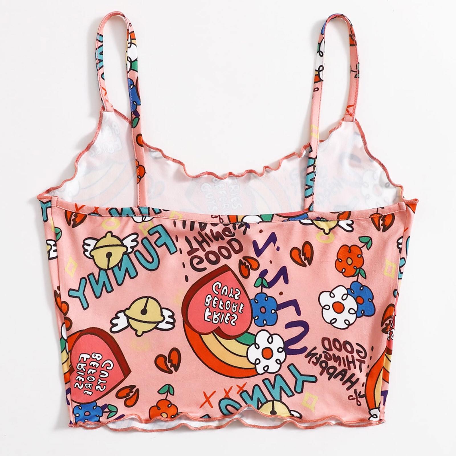 Cute Comic Flower Graphic Print Tank Crop Top Camisole Sleeveless Shirt Summer Casual Aesthetic Goth E-Girl Kawaii Korean Japanese Harajuku Streetwear