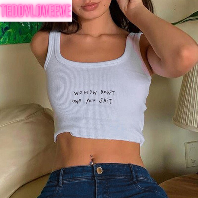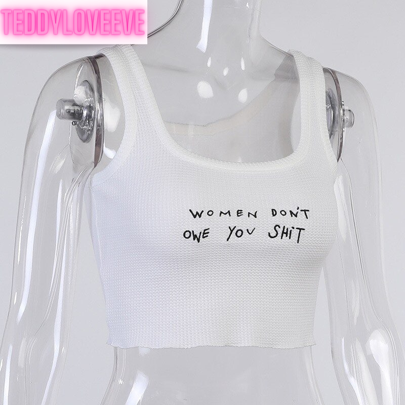 Cute Knit Indie Letter Embroidery Black White Tank Top Crop Top Sleeveless Shirt Goth Punk Casual E-Girl Kawaii Korean Japanese Harajuku Streetwear