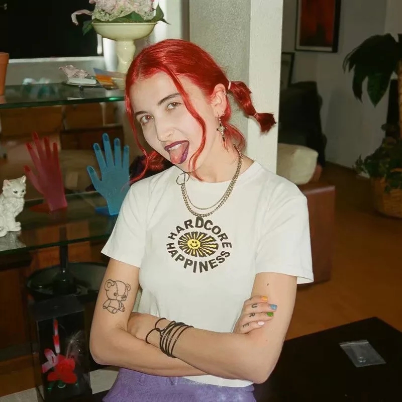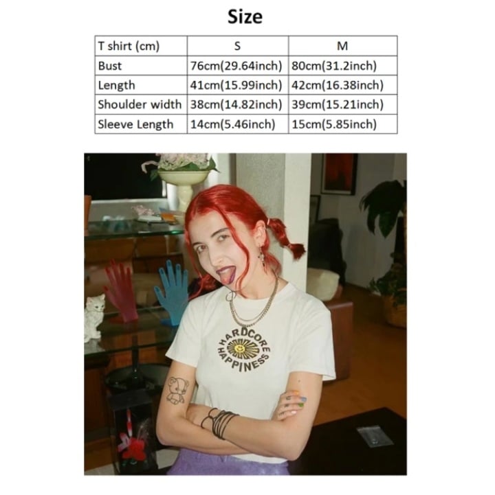 Cute Happiness Sun Print White Short Sleeve Shirt Loose Punk Aesthetic Casual Summer E-Girl Kawaii Korean Japanese Haraju