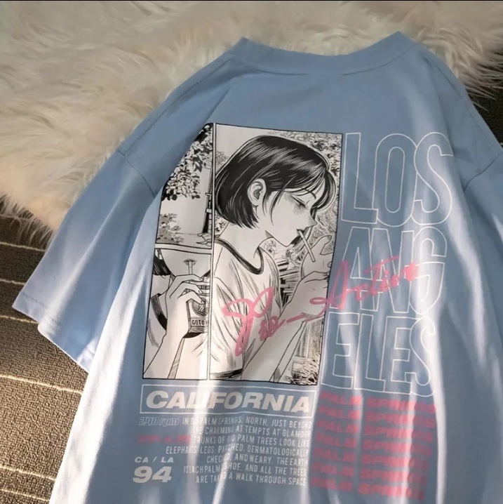 Cute Anime Girl Juice Box Cartoon Print Loose Oversize Short Sleeve T-shirt Punk Goth Aesthetic Casual Summer E-Girl Kawaii Korean Japanese Harajuku