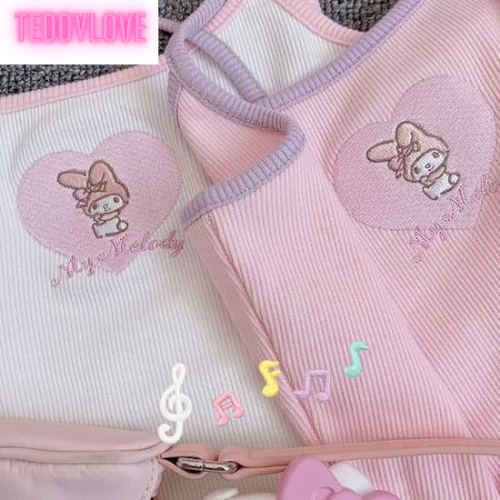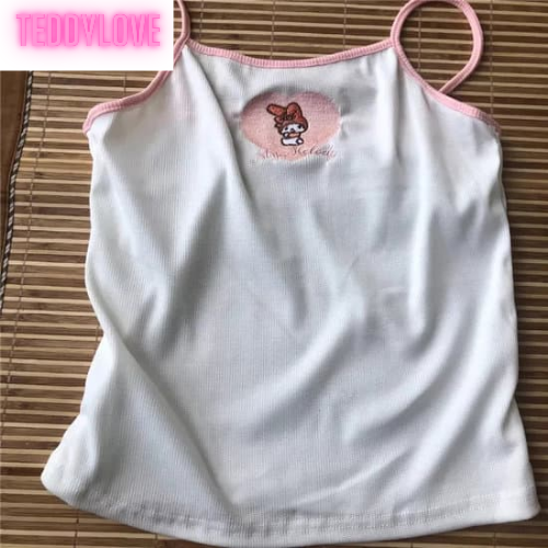 Cute Japanese Anime Love Heart Embroidery Cartoon Tank Top