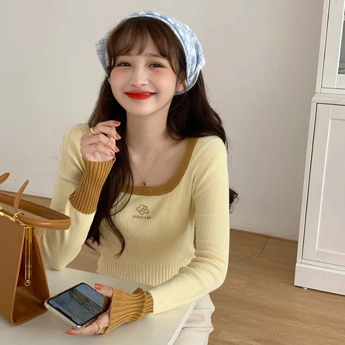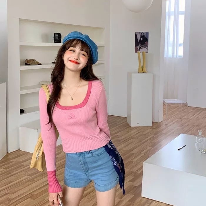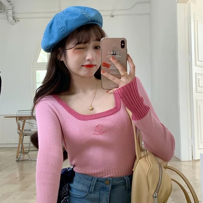 Cute Vintage Flower Embroidery Long Sleeve Shirt Sweater Jumper Aesthetic Casual Summer E-Girl Kawaii Korean Japanese Harajuku