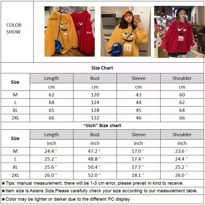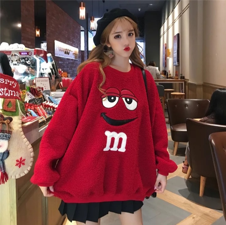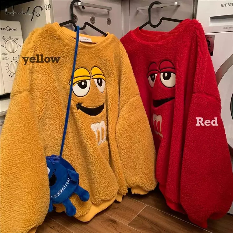 Cute Chocolate M Funny Cartoon Plush Oversize Long Sleeve Shirt Hoodie Pullover Sweatshirt Aesthetic Casual E-Girl Kawaii Korean Japanese Harajuku