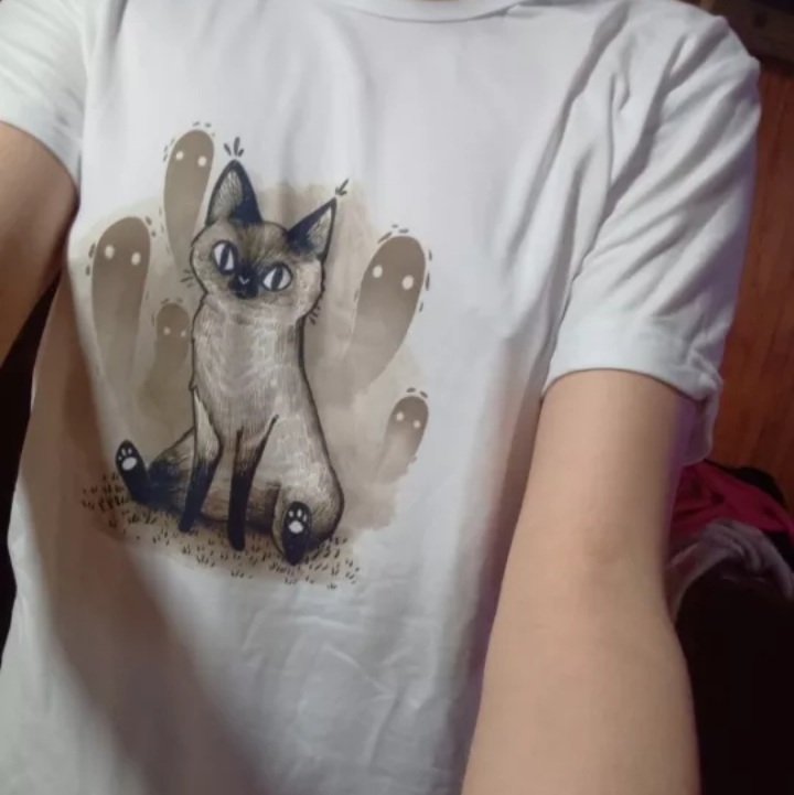 Cute Spooky Black Cat Halloween Horror Print Oversized Short Sleeve Shirt Aesthetic Casual E-Girl Kawaii Korean Japanese Harajuku