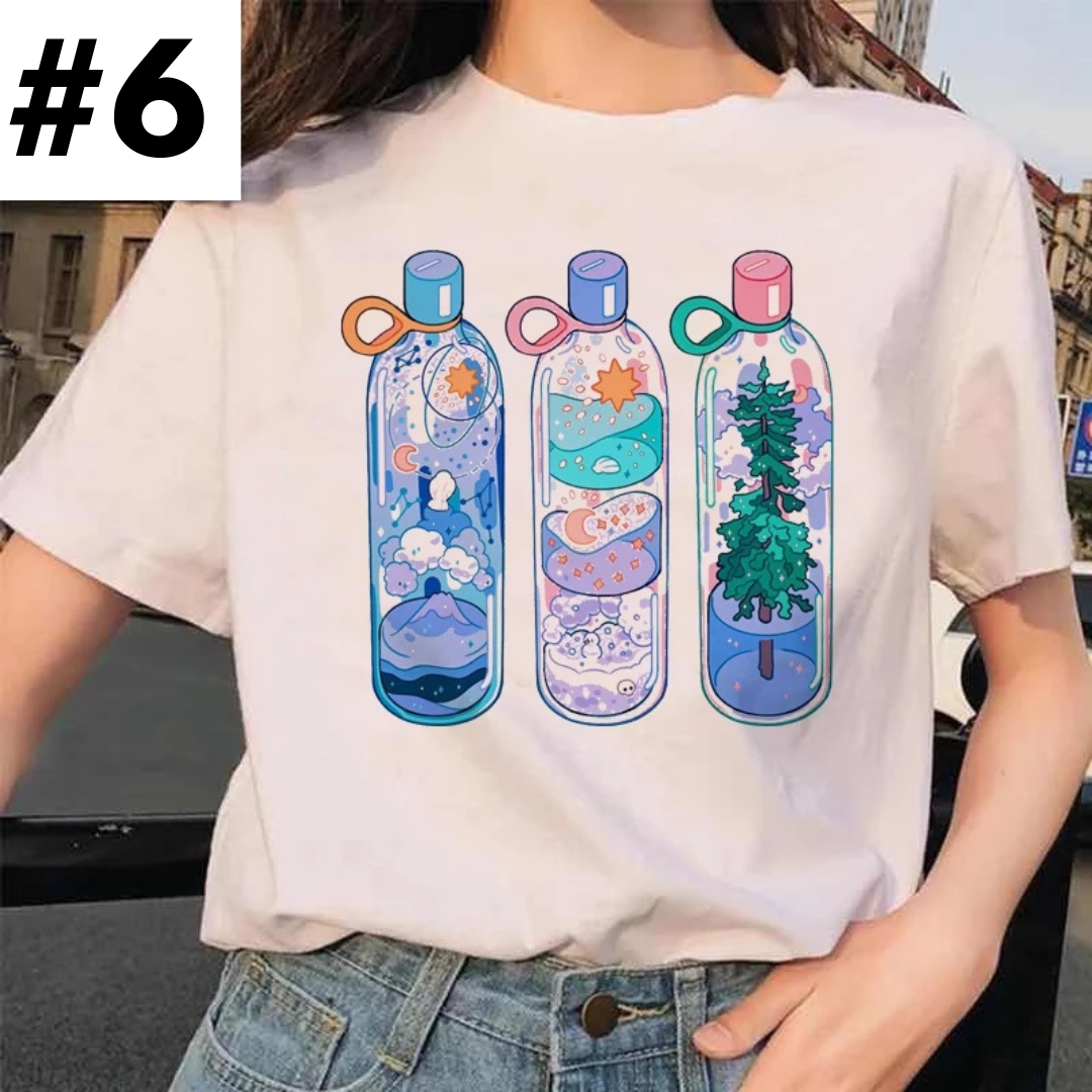 Cute Moon Water Soda Drink Can Print Oversized Short Sleeve Shirt Aesthetic Casual E-Girl Kawaii Korean Japanese Harajuku