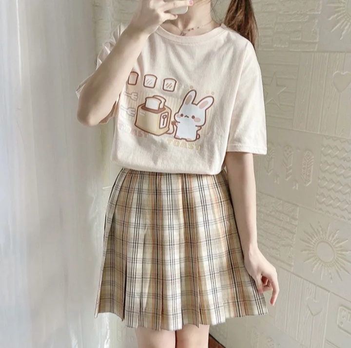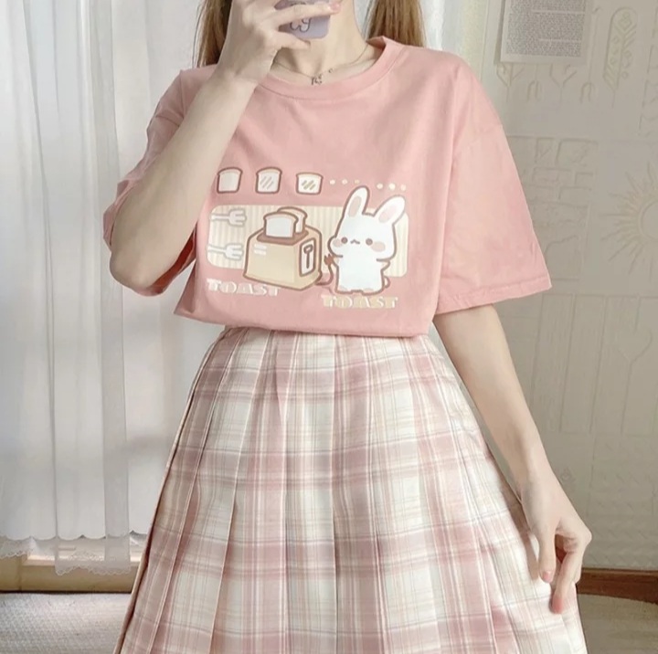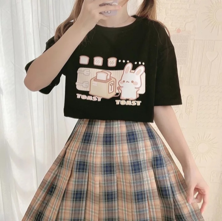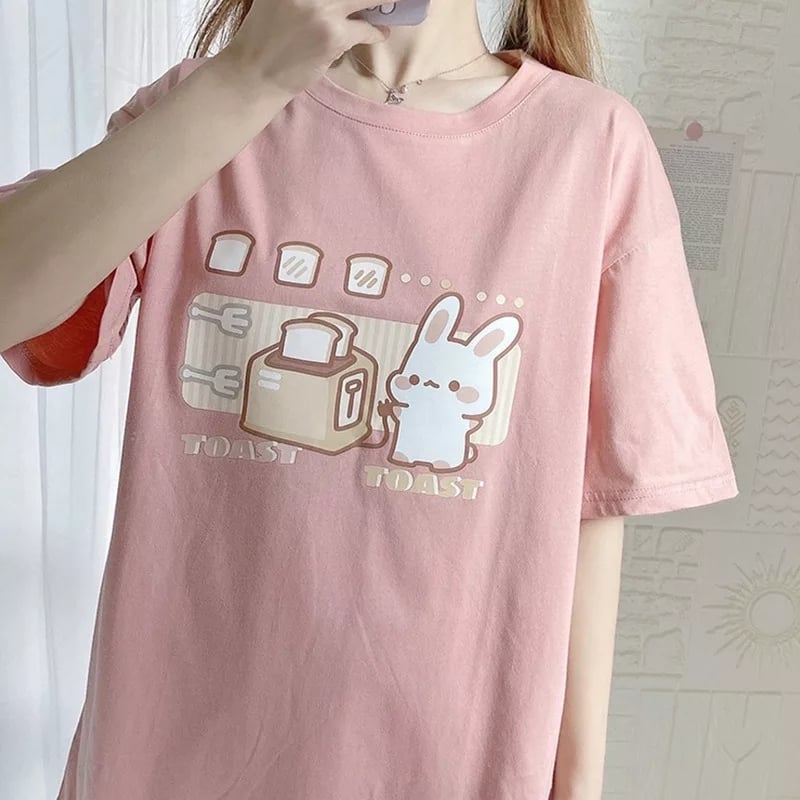 Cute Bunny And Toast Bread Graphic Cartoon Print Loose Short Sleeve T-shirt Aesthetic Casual Summer E-Girl Kawaii Korean Japanese Harajuku