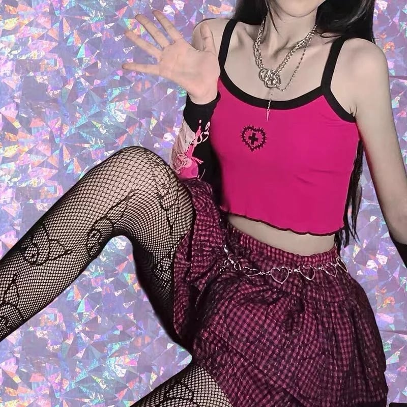 Cute Cross Pastel Sleeveless Crop Top Camisole Tank Goth Punk Aesthetic Casual E-Girl Kawaii Korean Japanese Harajuku