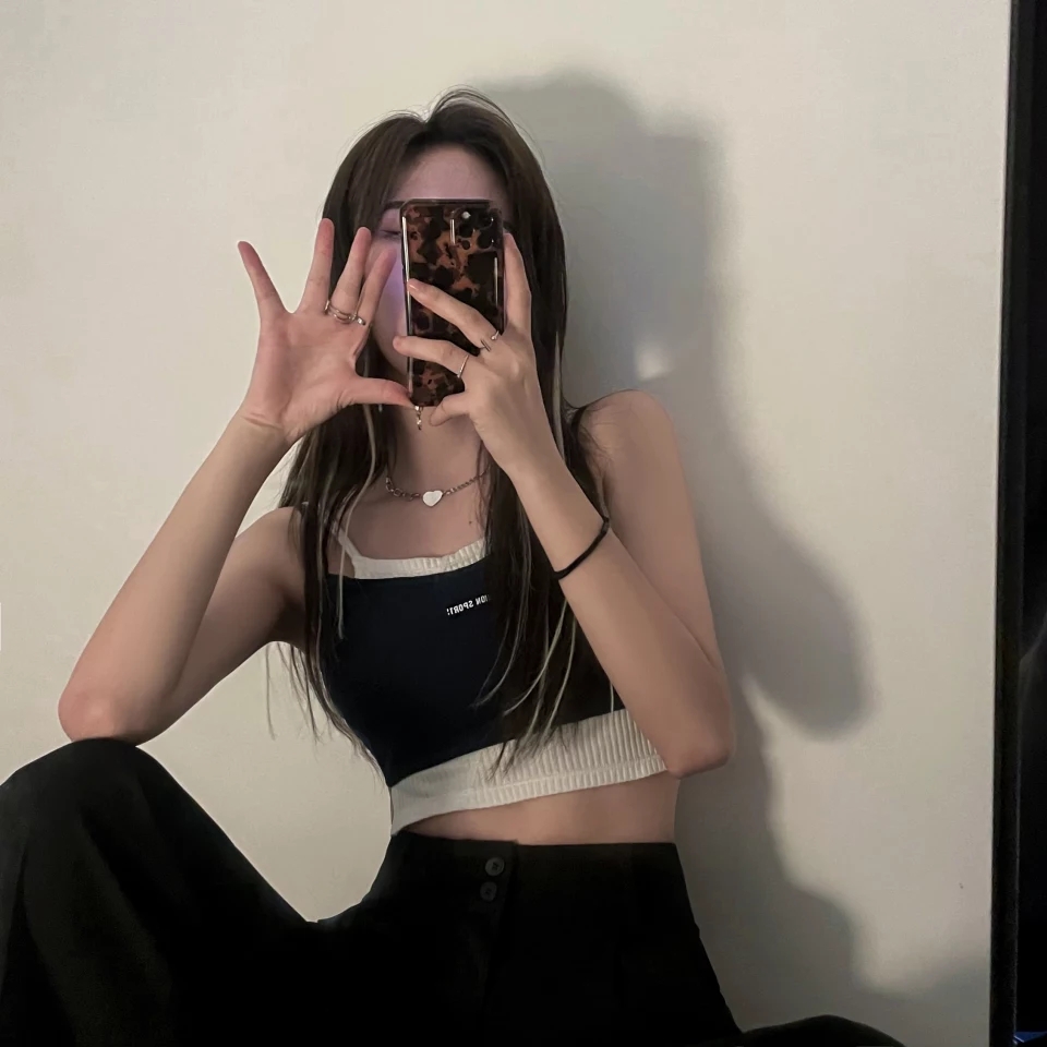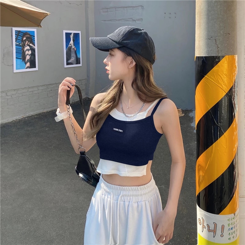 Cute Streetwear Knit Tank Sleeveless Shirt Crop Top Vest Basic Summer Aesthetic Casual E-Girl Kawaii Korean Japanese Harajuku