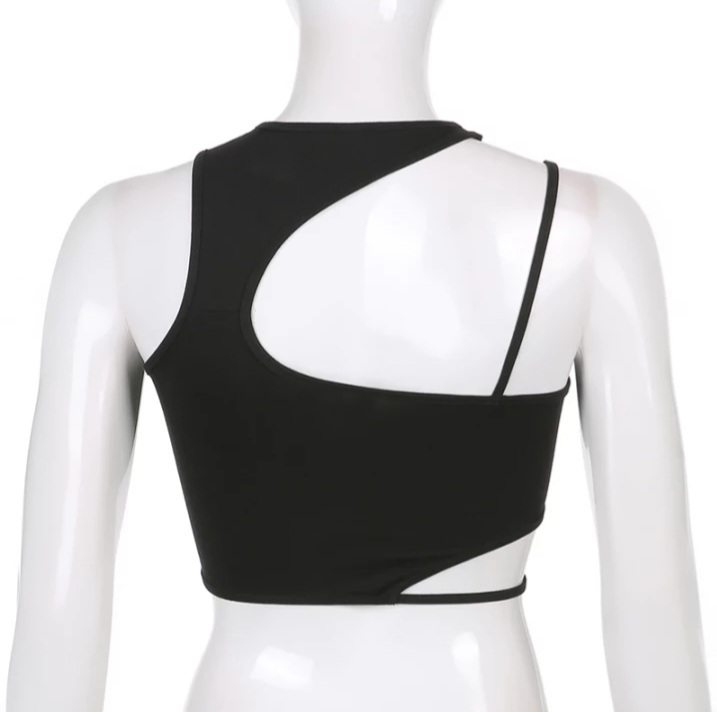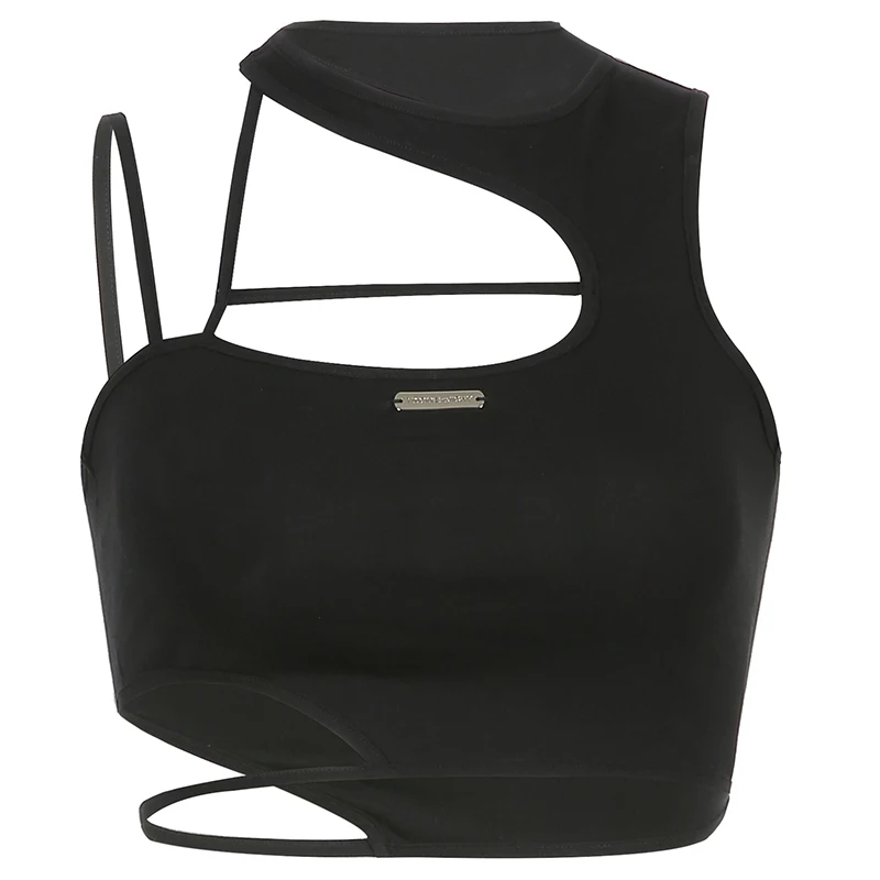 Cute Sexy Black Strappy Hollow Out Tank Crop Top Sleeveless Shirt Punk Goth Summer Aesthetic Casual E-Girl Kawaii Korean Japanese Harajuku