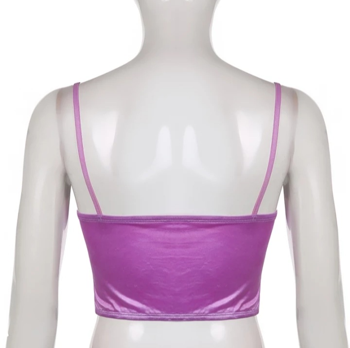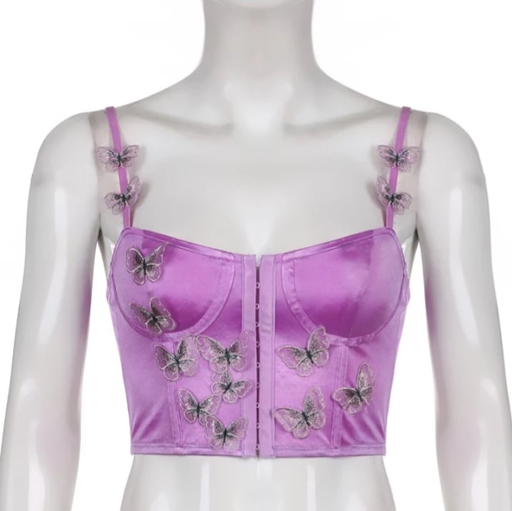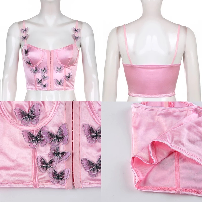 Cute Sexy Pink Satin Butterfly Corset Bustier Camisole Tank Crop Top Beach Party Summer Aesthetic Casual E-Girl Kawaii Korean Japanese Harajuku