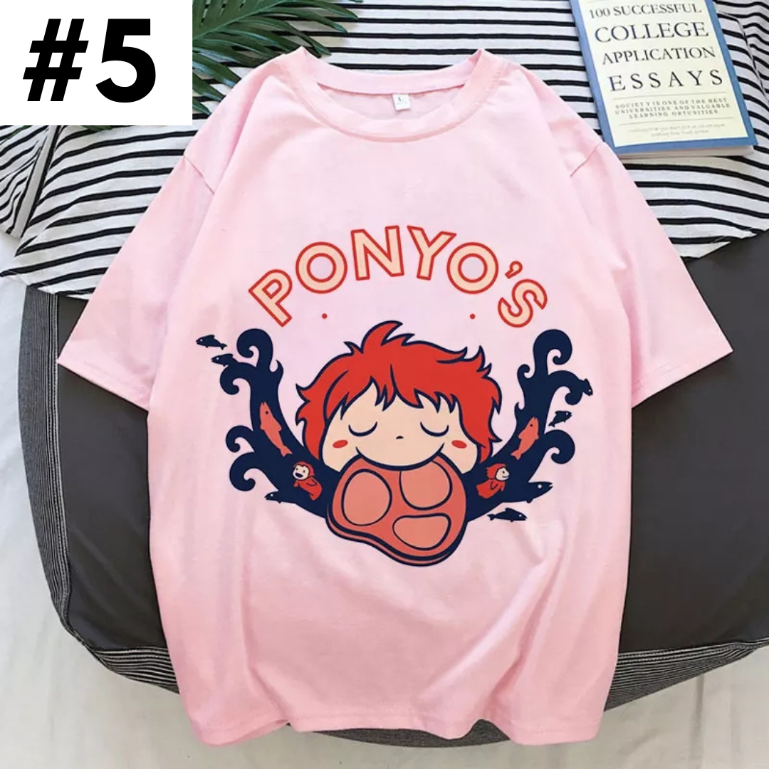 Cute Pink Ponyo Anime Cartoon Print Graphic Short Sleeve Shirt Top Summer Aesthetic Casual E-Girl Kawaii Korean Japanese Harajuku