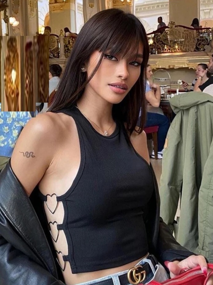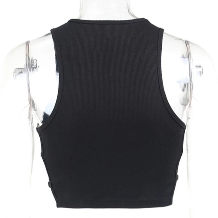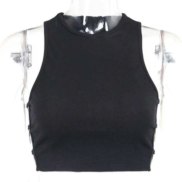 Cute Black Heart Hollow Out Ribbed Tank Crop Top Sleeveless Shirt Punk Goth Summer Aesthetic Casual E-Girl Kawaii Korean Japanese Harajuku