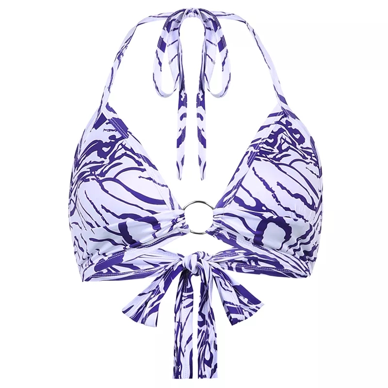 Cute Sexy Tie Dye V-Neck Lace Up Halter Backless Beach Crop Top Summer Aesthetic Casual E-Girl Kawaii Korean Japanese Harajuku