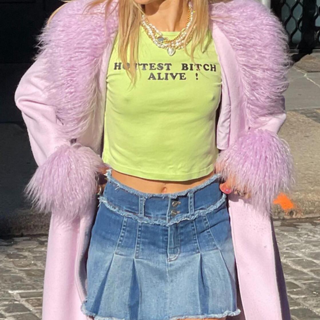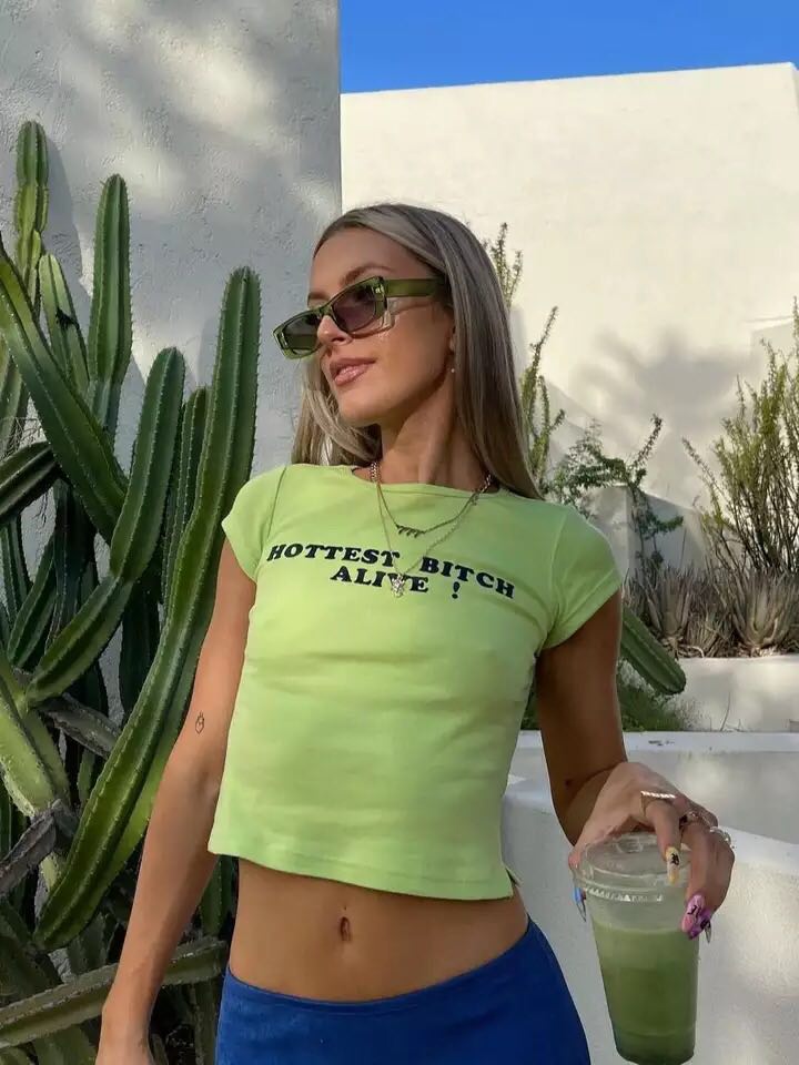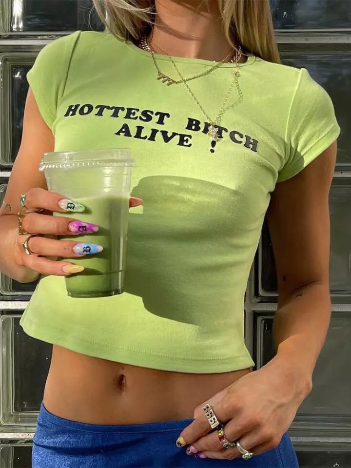 Green Hottest B Alive Letter Print Short Sleeve Shirt Crop Top Summer Aesthetic Casual E-Girl Kawaii Korean Japanese Harajuku