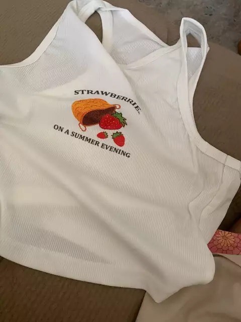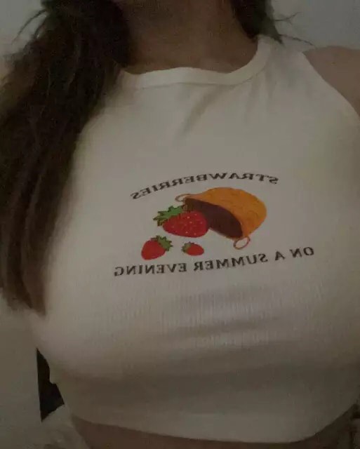 White Ribbed Strawberry Fruit Print Tank Top Crop Top Sleeveless Shirt Summer Aesthetic Casual E-Girl Kawaii Korean Japanese Harajuku