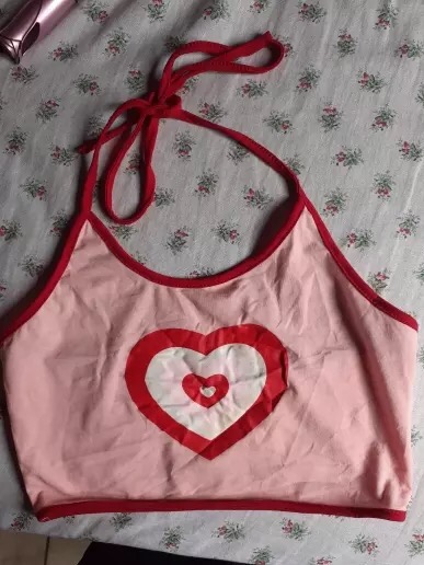 Pink Love Heart Print Halter Backless Spaghetti Strap Camisole Crop Top Summer Aesthetic Casual E-Girl Kawaii Korean Japanese Harajuku