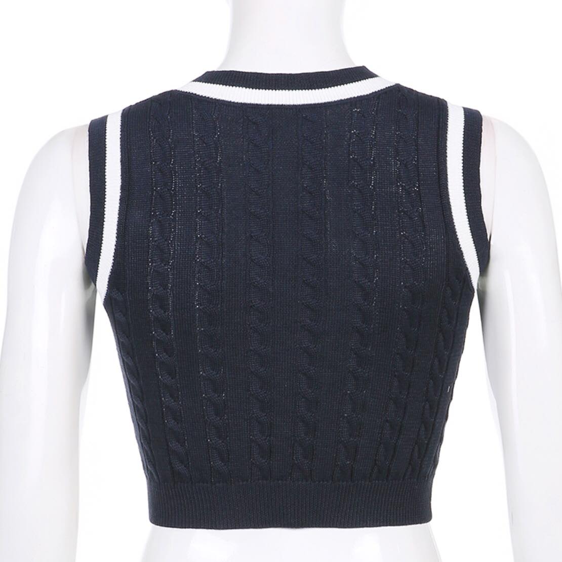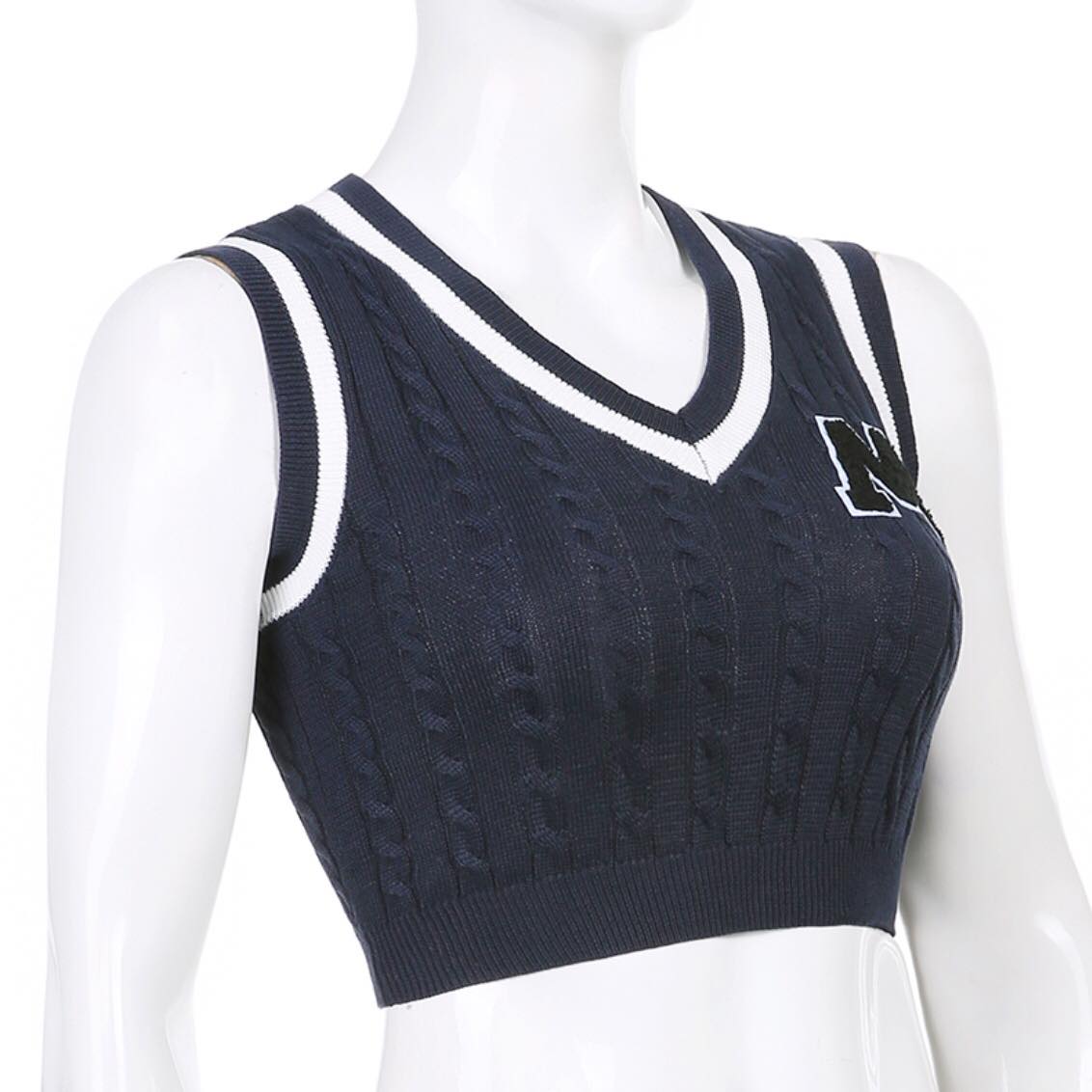 Preppy Letter Print Knit Tank Sweater Vest Sleeveless V Neck Vintage Crop Top Pullover Summer Aesthetic Casual E-Girl Kawaii Korean Japanese Harajuku