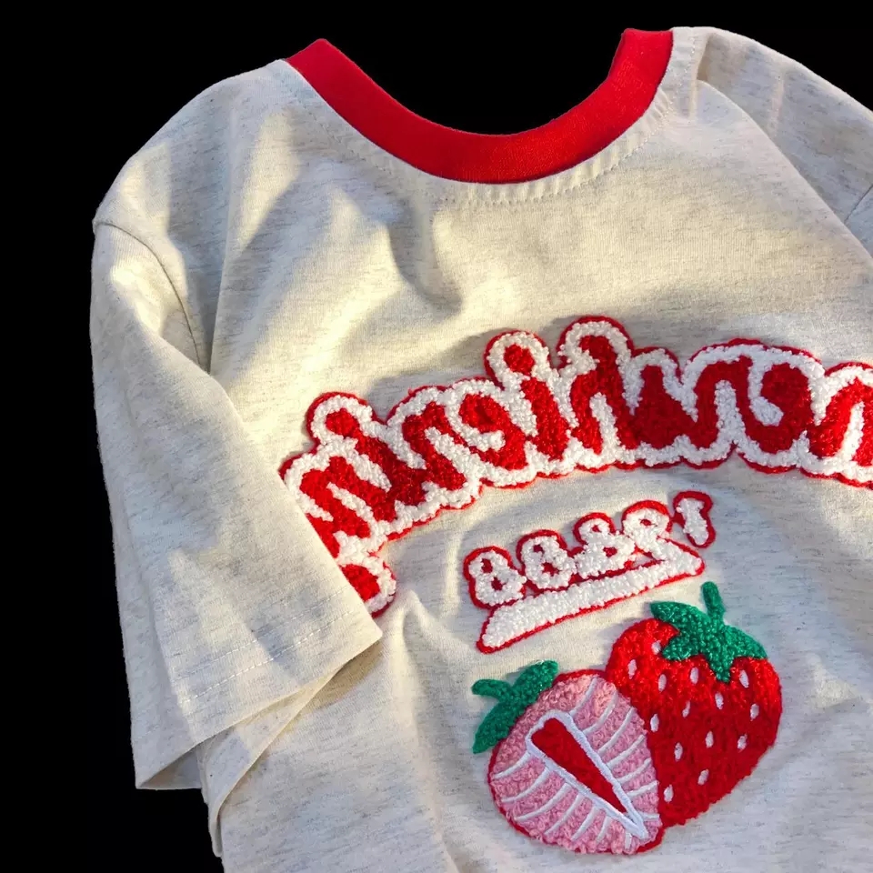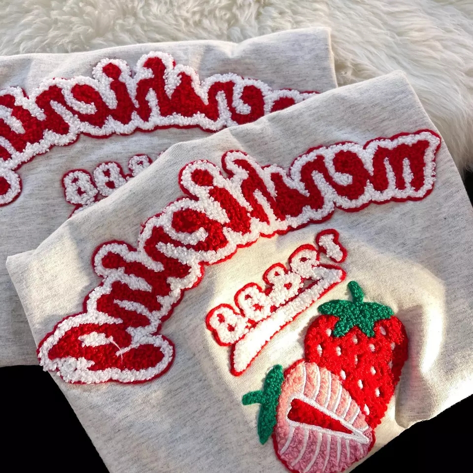 Cute Pastel Pink Sweet Rabbit Crying Strawberry Print Oversized Short Sleeve Shirt Aesthetic Casual E-Girl Kawaii Korean Japanese Harajuku