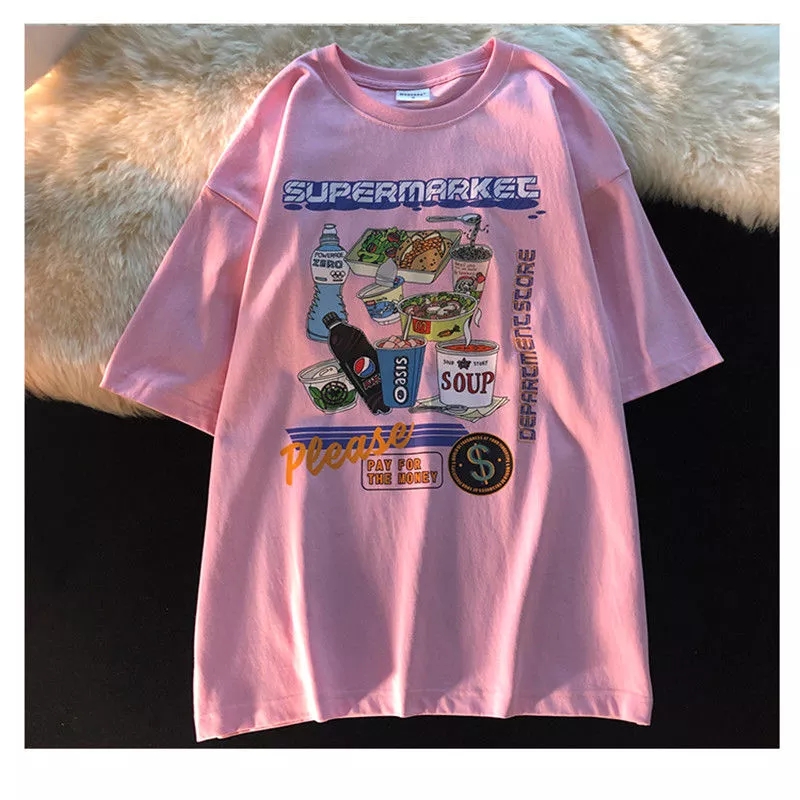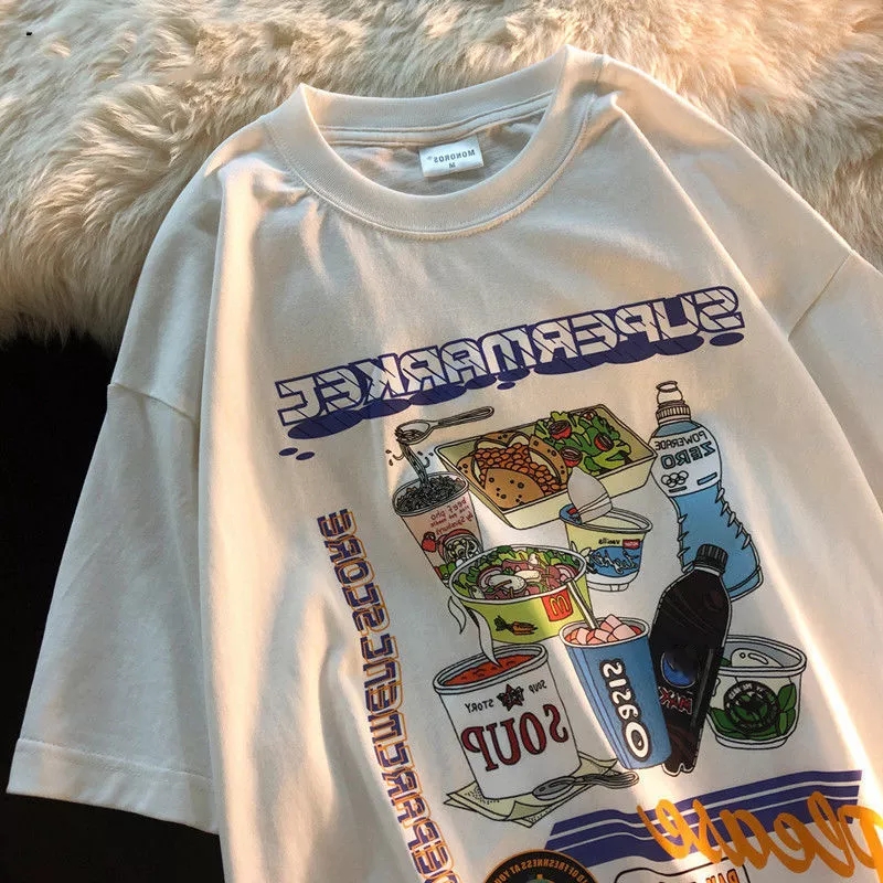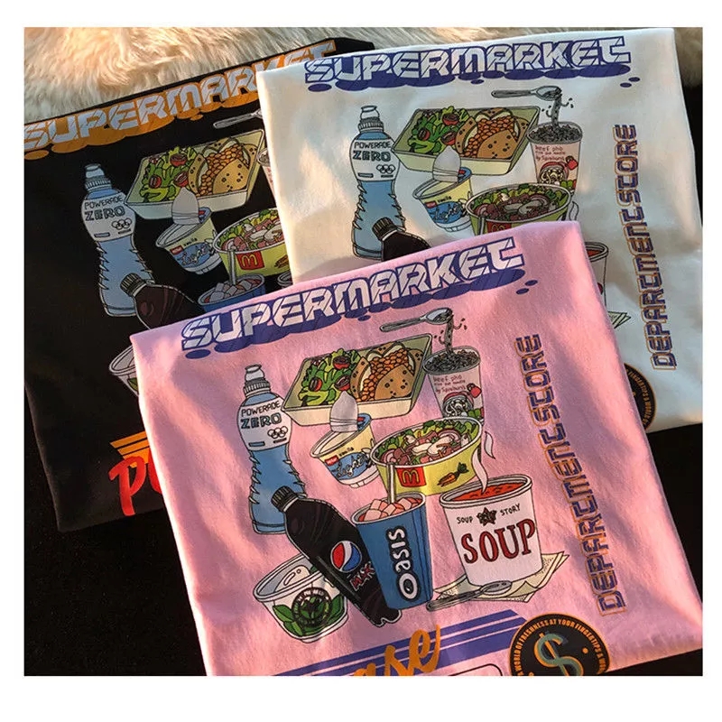 Retro Gas Station Food Print Short Sleeve T-shirt