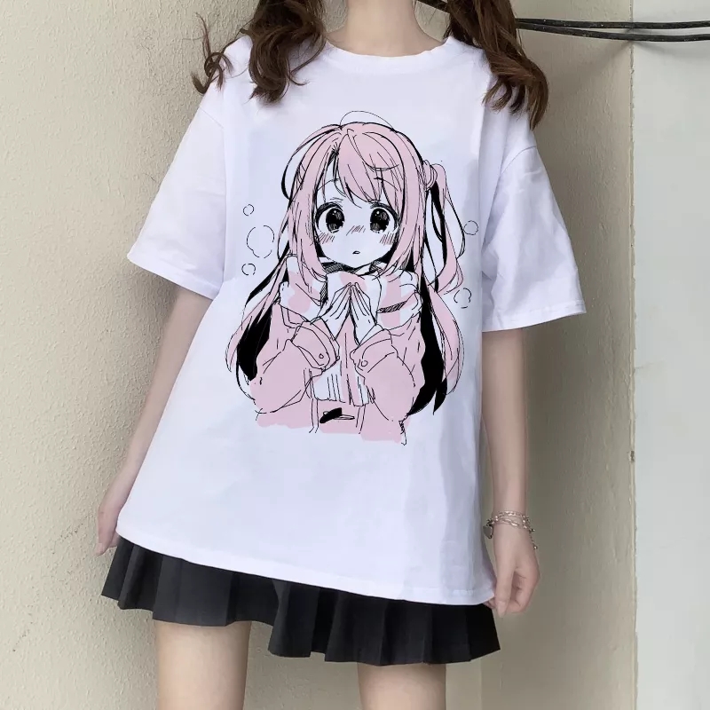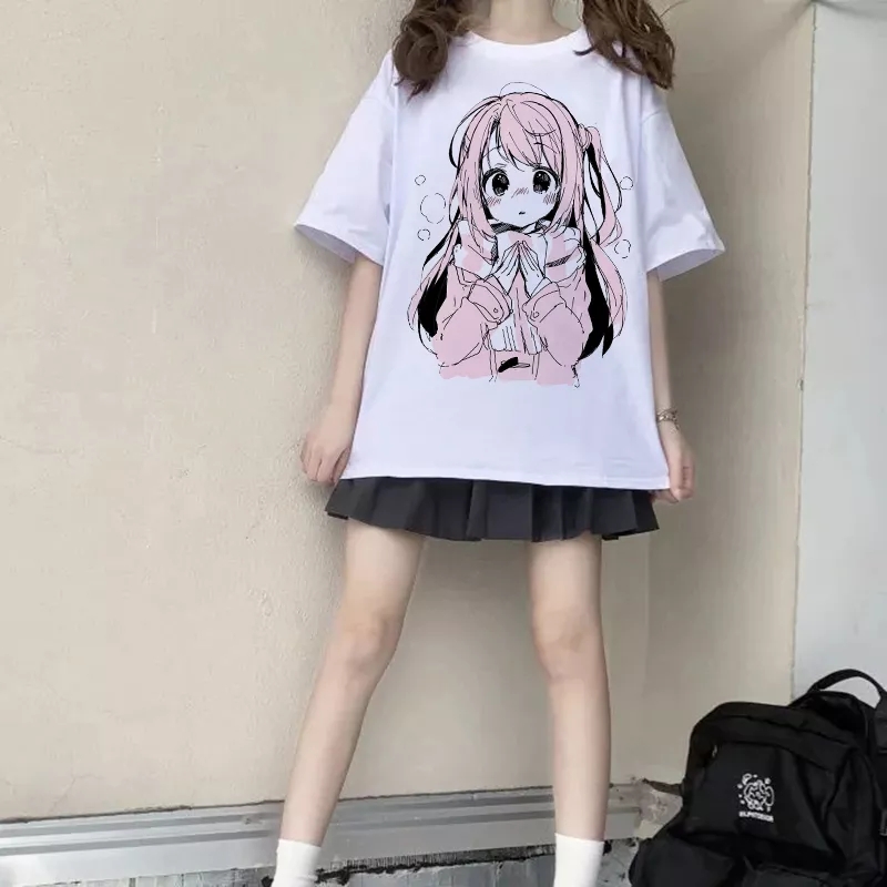 Anime Girl Print Baggy Short Sleeve T-shirt