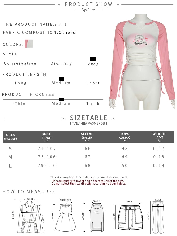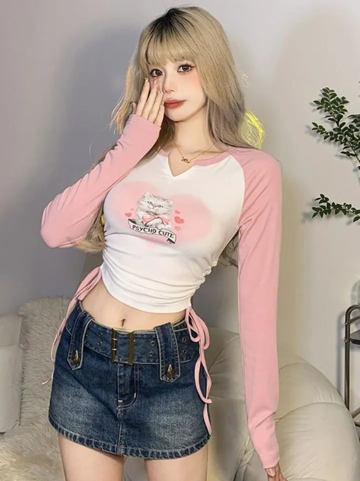 Sweet Pink Cat Print Long Sleeve T-shirt